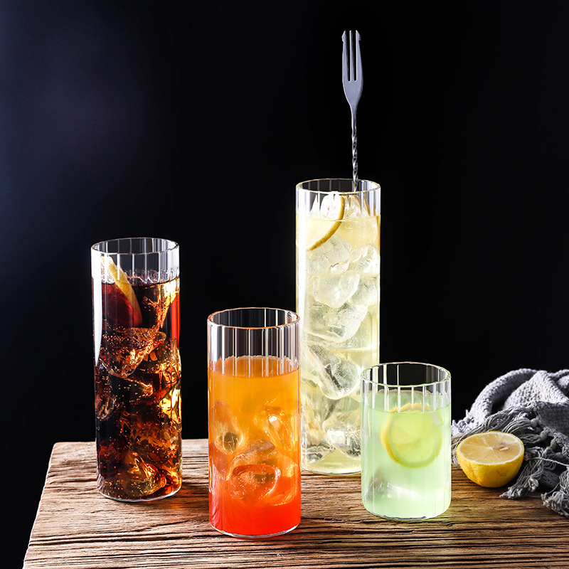 高ホウ素シリコンガラス透明縦紋長島氷カップコップ朝食牛乳カップジュースカップ飲料単層カップ
