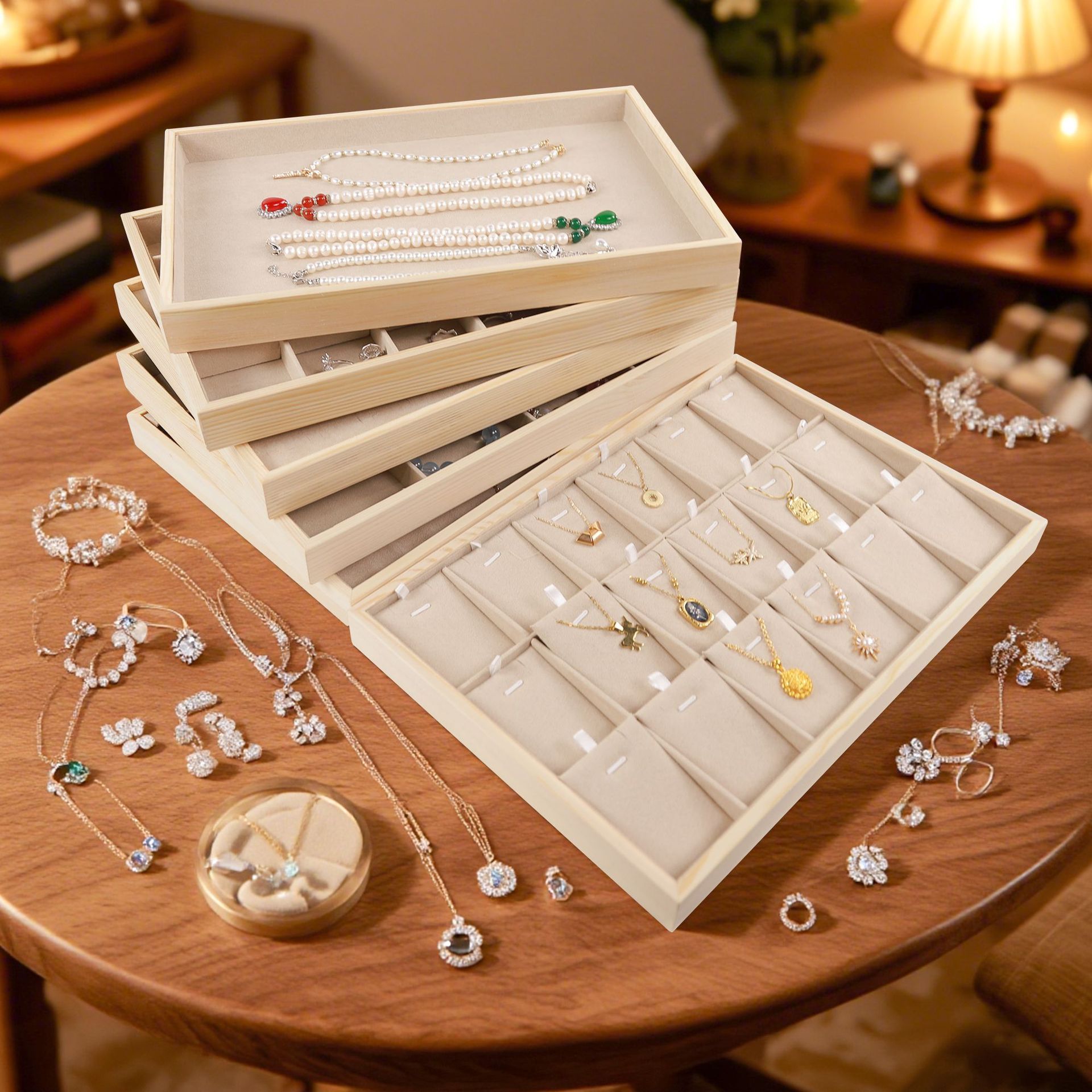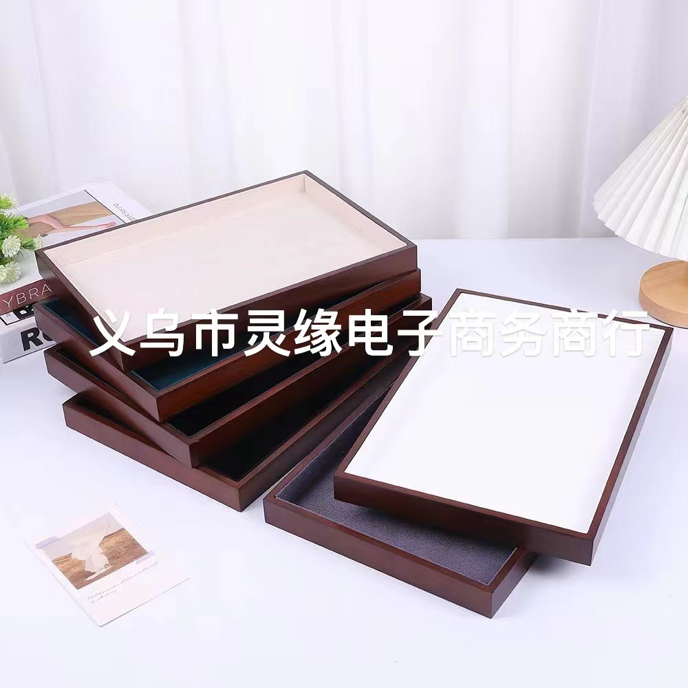 ブラックウォールナット柄木製ベージュジュエリートレイ収納イヤリングネックレス見本パレット空のトレイジュエリーブレスレット装飾品
