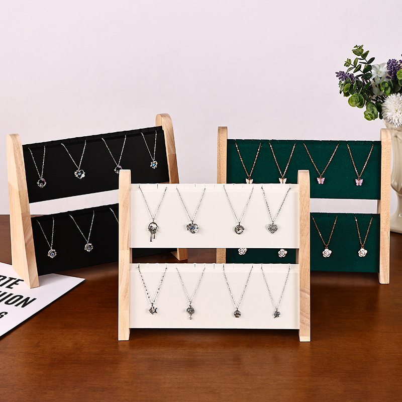 实木双层项链展示架大容量珠宝店首饰项链收纳架夜市摆摊直播道具