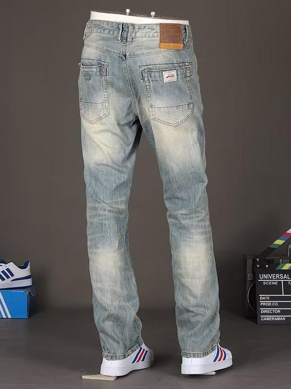 外国貿易は秋の冬に欧米のファッションブランドのジーパンの男性のレトロなレトロなポンドのゆったりしたストレートの大きいサイズのズボンを切ります。