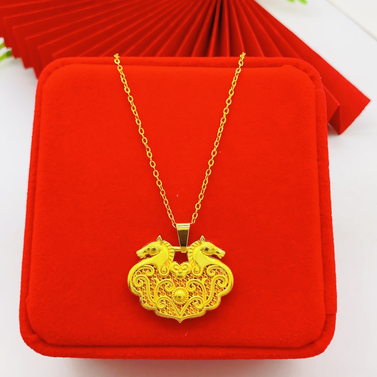 銅金メッキ婁空転運珠ペンダント女性ベトナム沙金クロスネックレス水波チェーンジュエリー卸売り