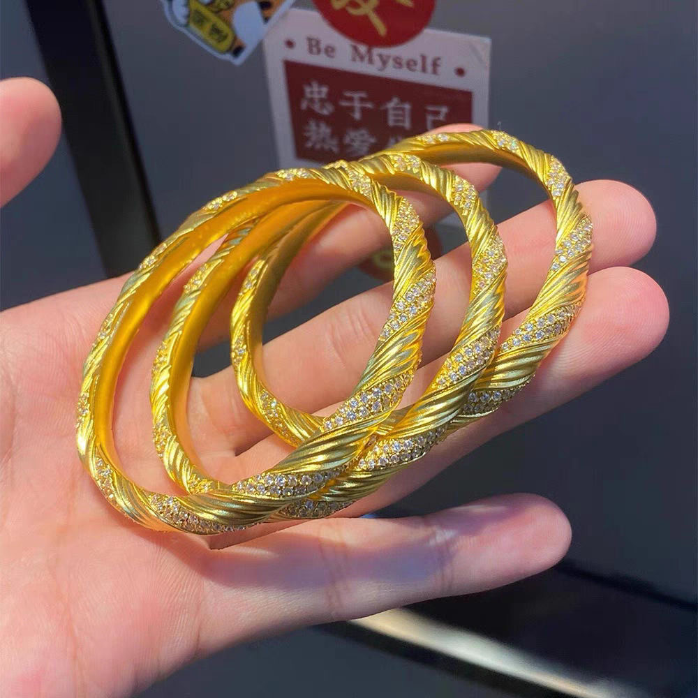 越南沙金色古法拉丝缠绕麻花卡扣手镯时尚满天星跨境爆款货源批发