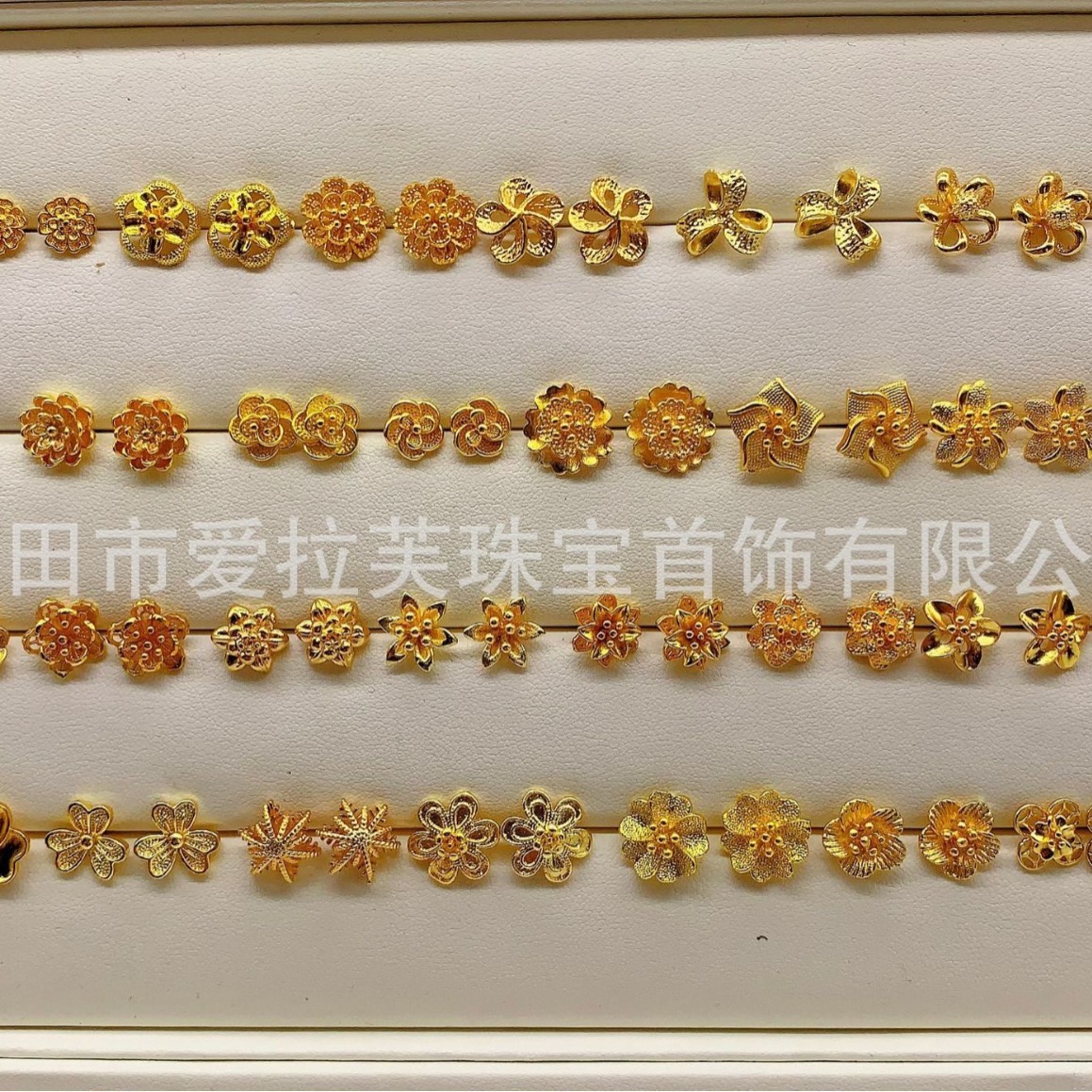 新しい金メッキピアス女性の人気ファッションジュエリーシンプルなイヤリングの多くの花型模様ピアス工場卸売り