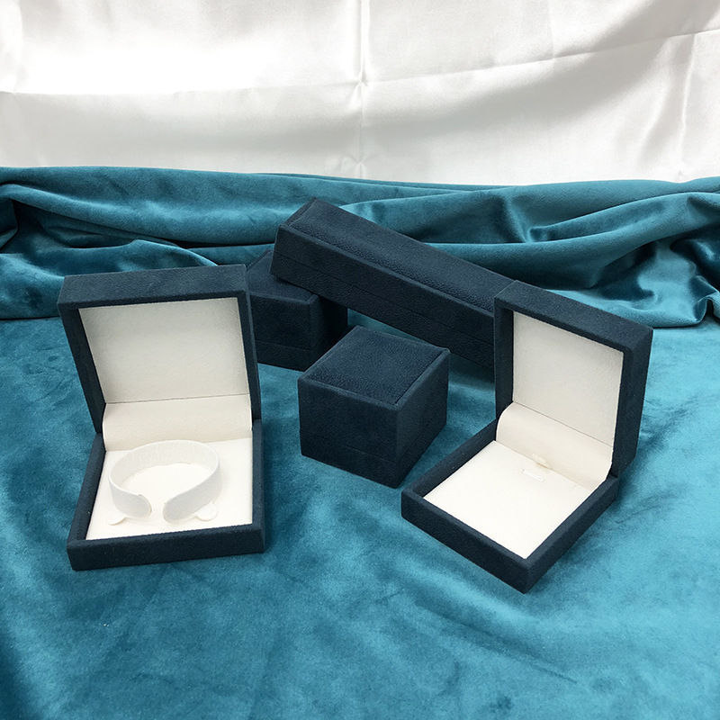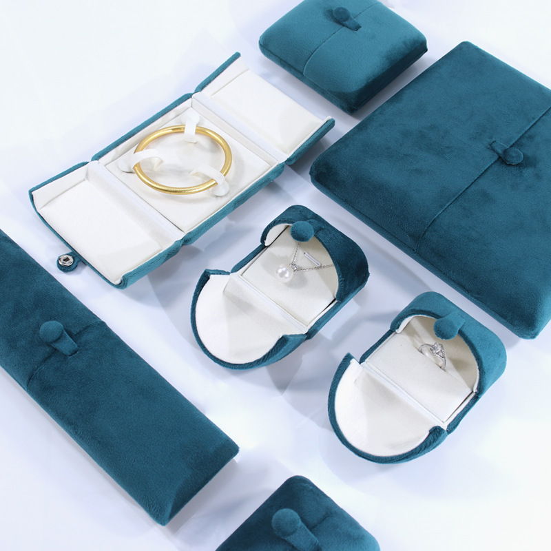 厂家直销高档绒布双开孔雀蓝珍珠礼盒按扣首饰盒丽丝绒套链盒现货