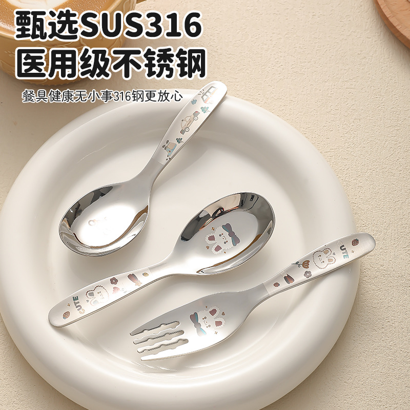 304ステンレススプーンフォークセットクリエイティブ子供食器漫画スプーンフォーク食事補助スプーンベビースプーン