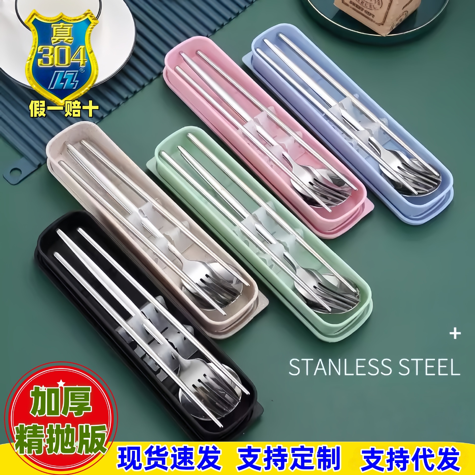 304不锈钢叉勺子筷子三件套礼品学生上班族户外旅行便携餐具套装