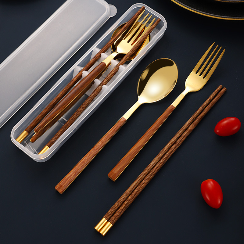 クロスボーダーステンレス鋼食器セット箸スプーン 3 点セット北欧ポータブルアウトドア旅行学生食器ギフト