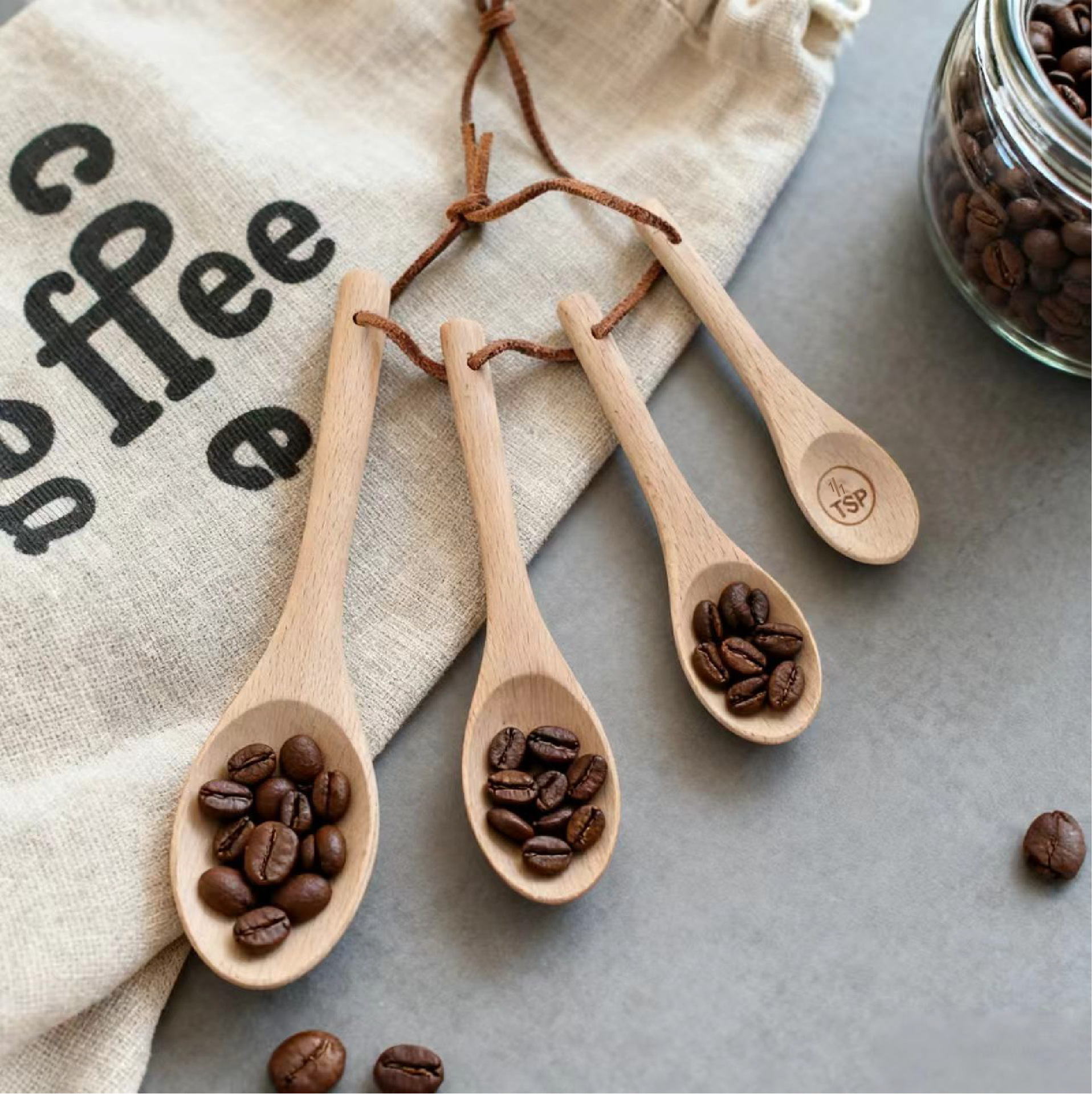 アマゾン爆型木製焙煎計量スプーン日本式木計量スプーンアカシア木計量スプーン4点セットコーヒー計量スプーン