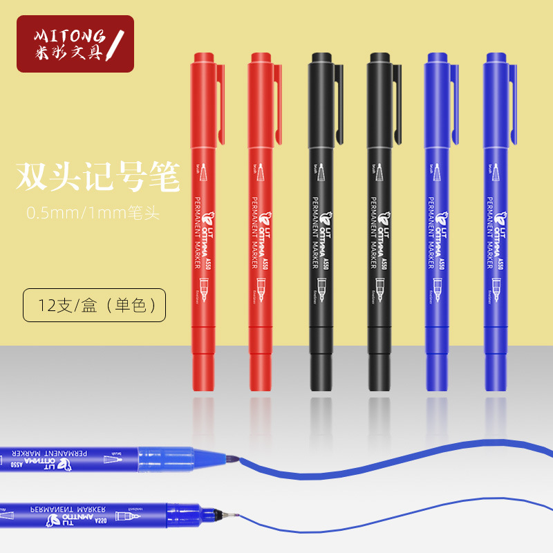 小さいダブルヘッドの油性マーカーペンの線のペンの黒色の青い赤い子供の美術の絵画の縁の物流のマークのペンの水性