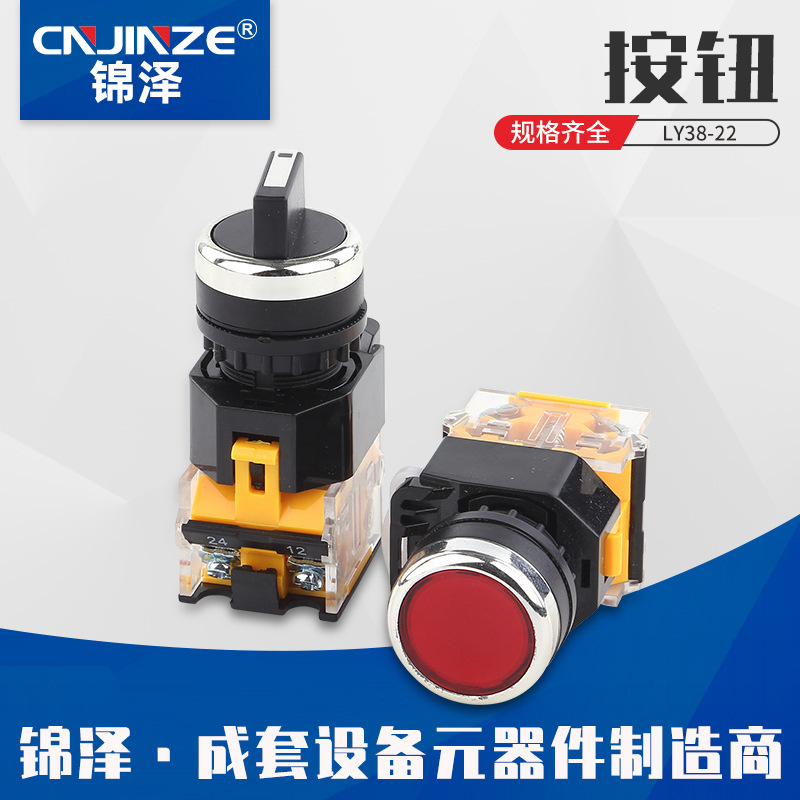 LY38-11押しボタンスイッチ平頭プラスチックボタンセルフロック自己再電源起動押しスイッチ開孔22mm
