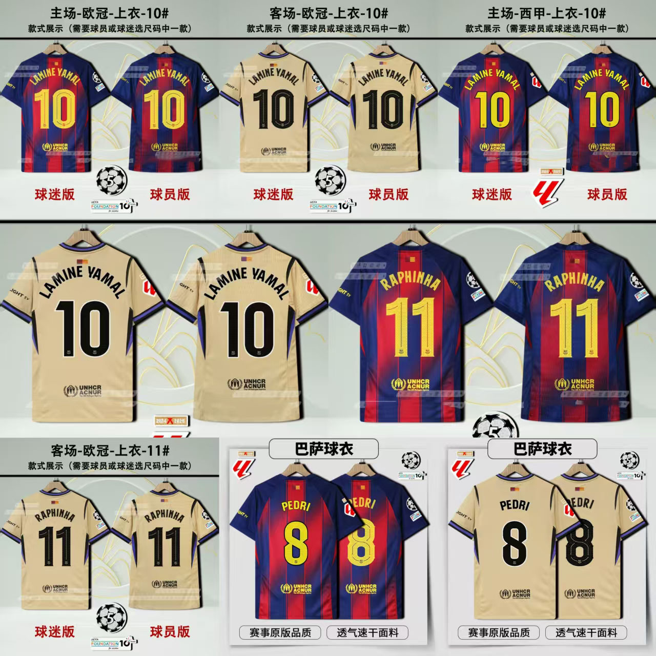 2526巴萨新赛季10号亚马尔8号佩德里巴塞主客场球员球迷足球上衣