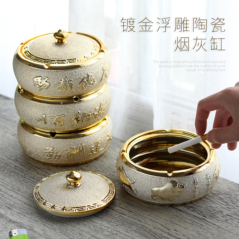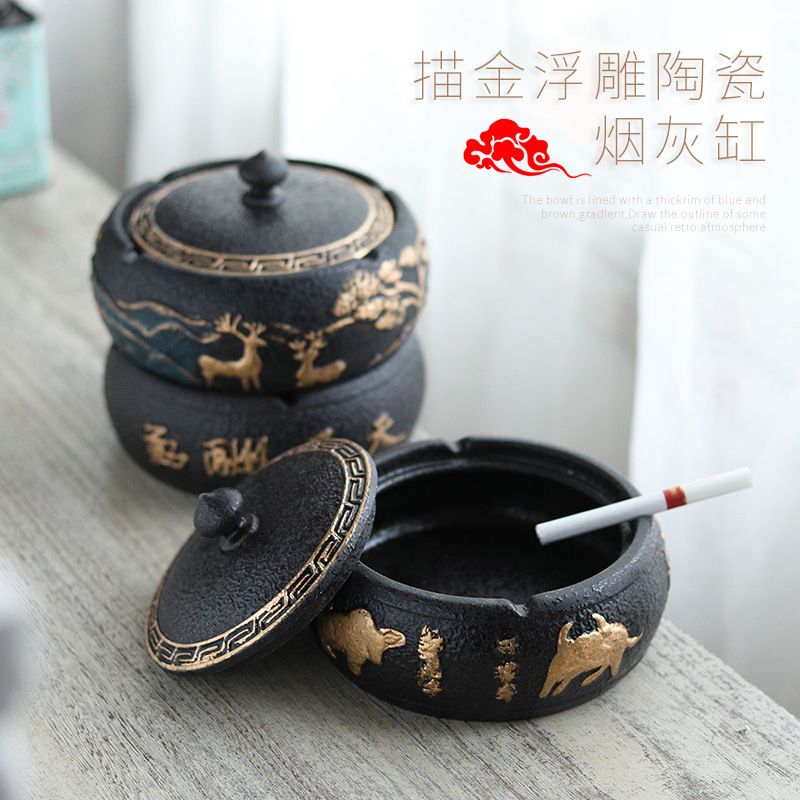 灰皿蓋付き創意家庭用オフィス個性潮流客間中国式飛灰防止ほこり防止陶磁器灰皿