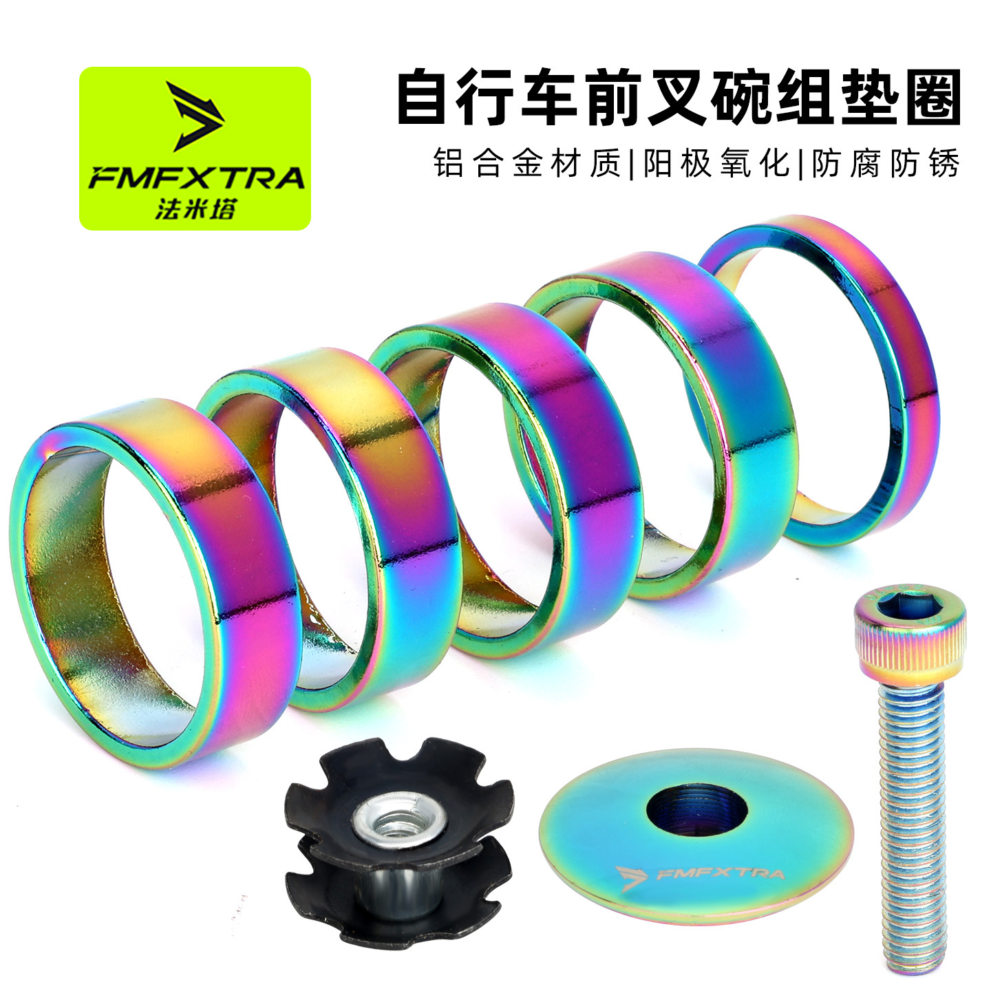 自転車フォークガスケットセット、カラフルなボウルセット、28.6フロントフォークヘッドアルミ合金ガスケットセット