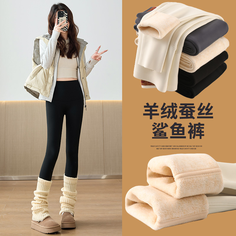 2025年新款加绒加厚高腰收腹鲨鱼裤打底裤羊毛蚕丝保暖冬季外穿女