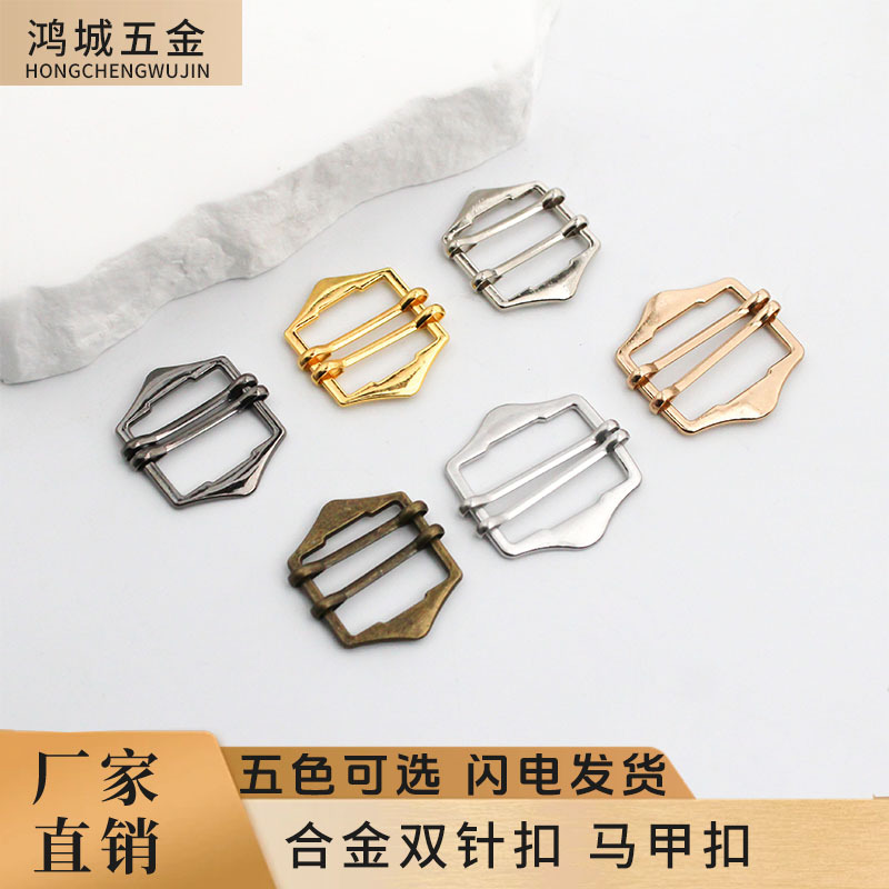 二本針目ボタン、ショルダーストラップ調整バックル、メタルベスト、二本針バックル、ベルト、4段バックル、衣類装飾バックル、アクセサリー、合金
