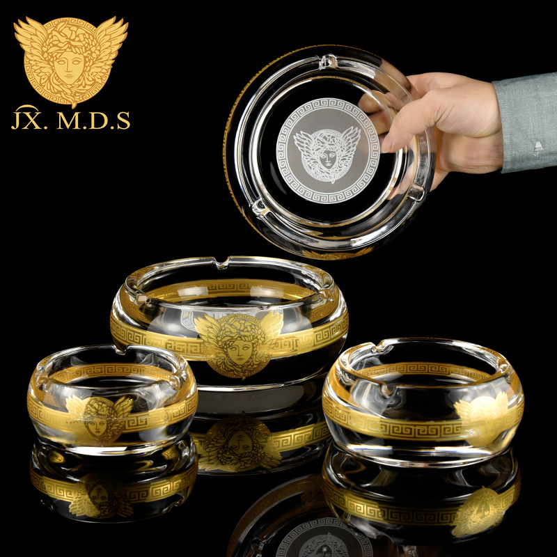 美杜莎クロスボーダー水晶ガラス灰皿円形家庭用創意シガー灰皿厚手卸売り