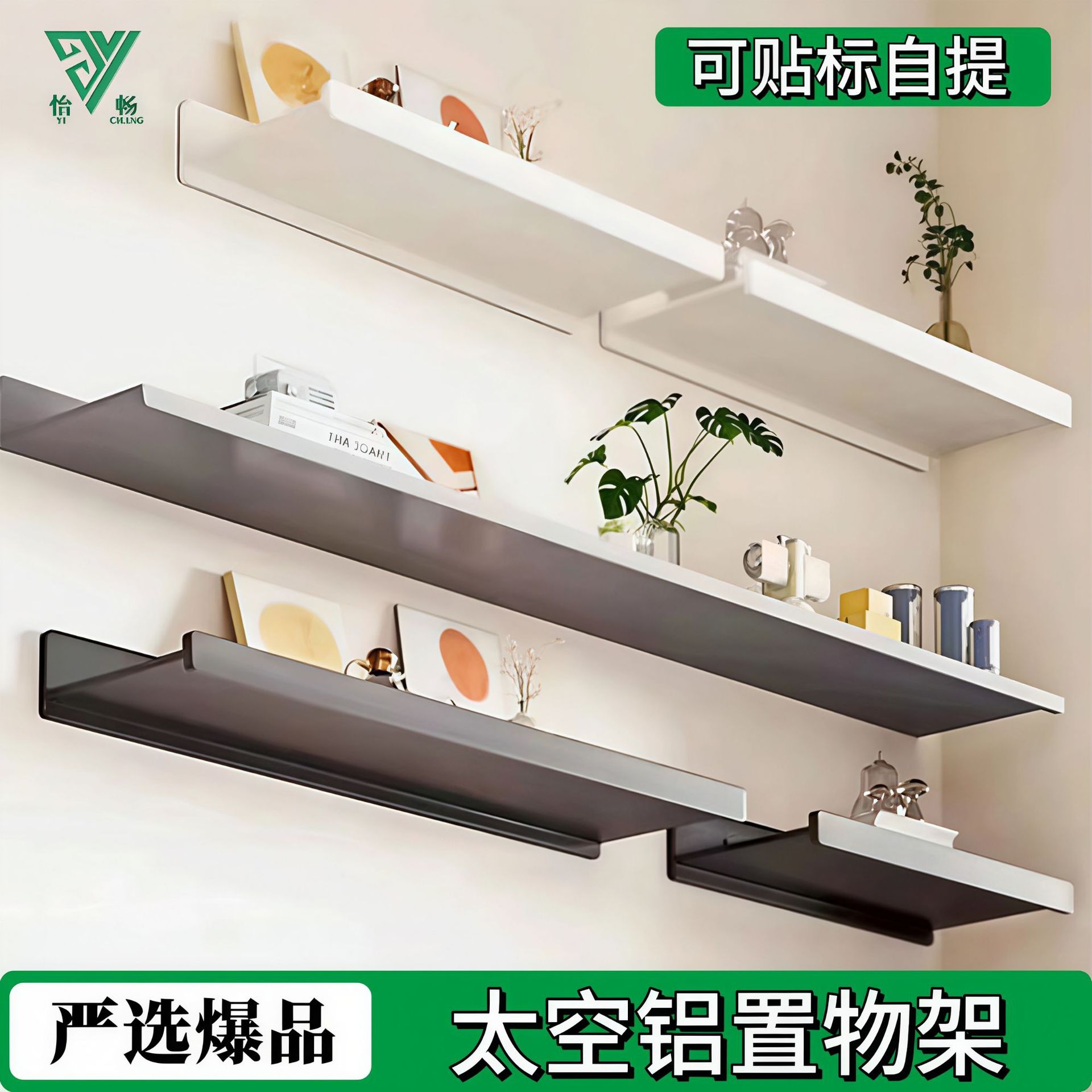 铝合金置物架墙上书架承重一字层板装饰客厅卧室隔板简约储物架