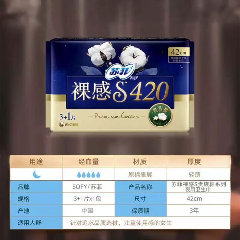 ソフィー生理用ナプキン裸感貴綿420mm 3 + 1枚の柔らかい綿の薄い肌着叔母タオル