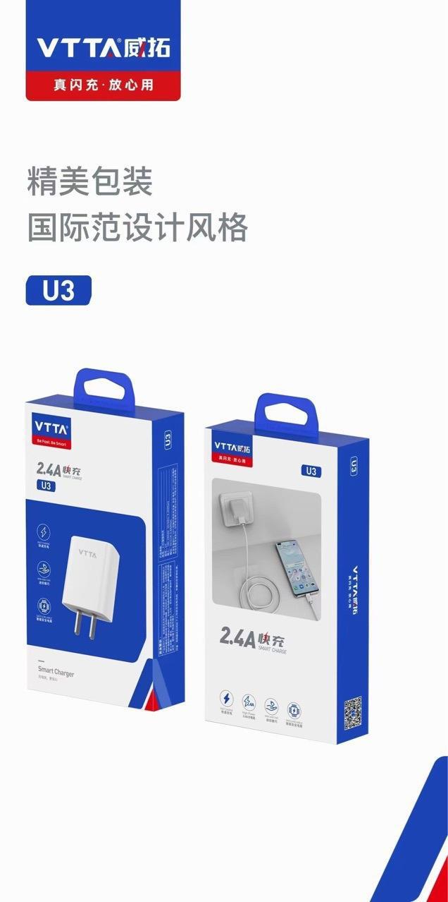 VTTA U27/U27T 充電ヘッド充電スリーブ充電 3C 認定充電器はスマートフォンの急速充電に適しています