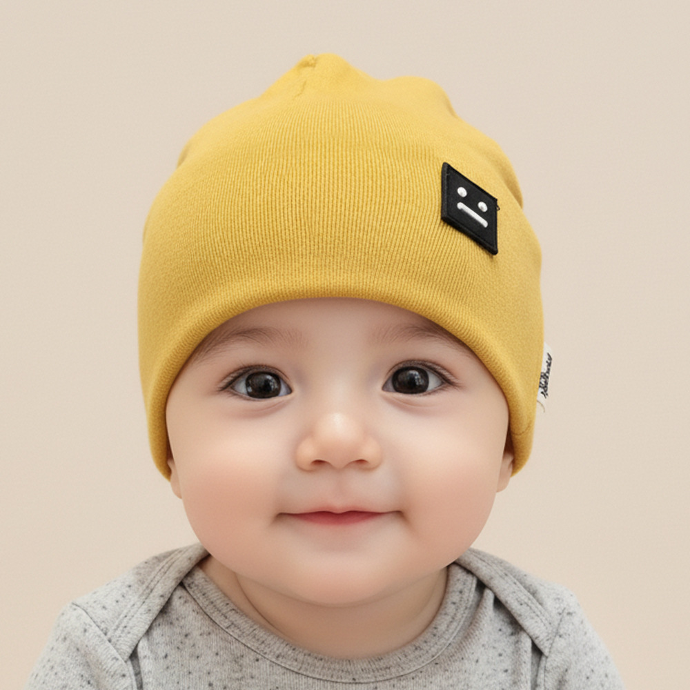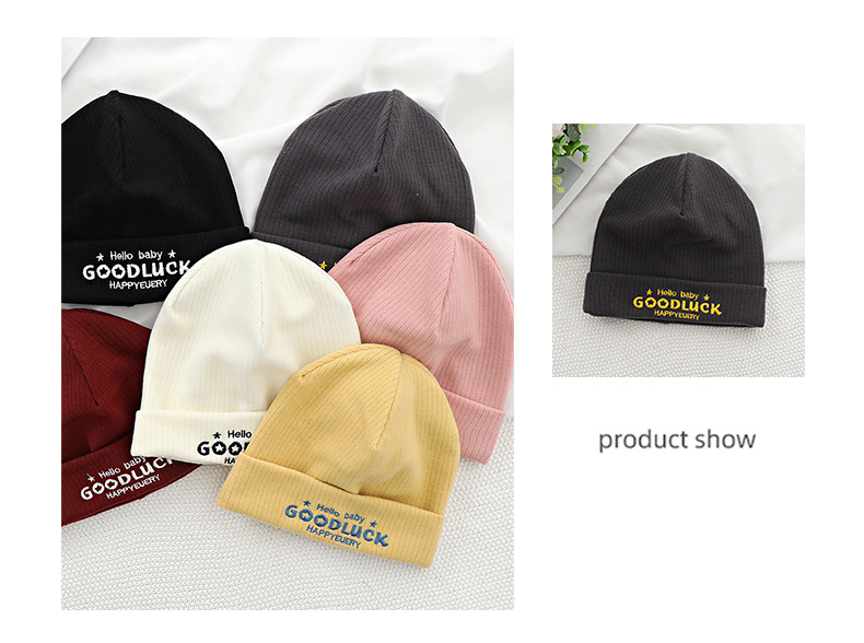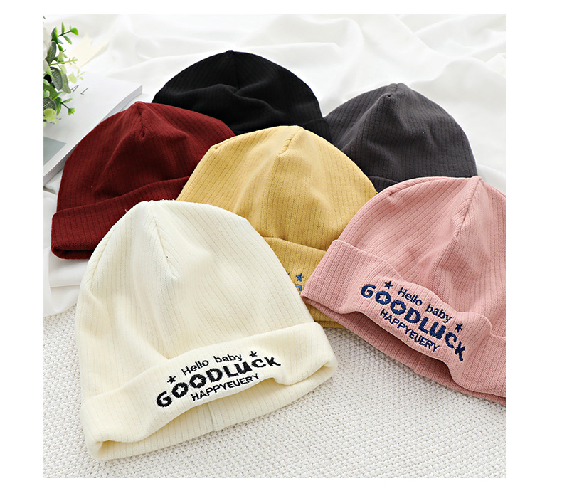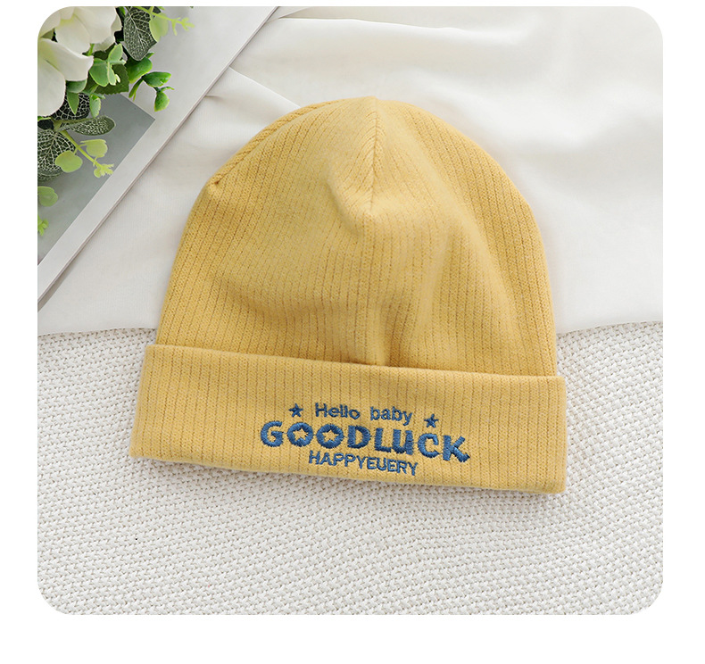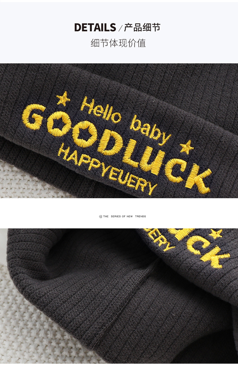 25秋冬新作子供用折り返し刺繍文字入りプルオーバーハット、赤ちゃんのお出かけ用防寒耳当て付き二重帽子
