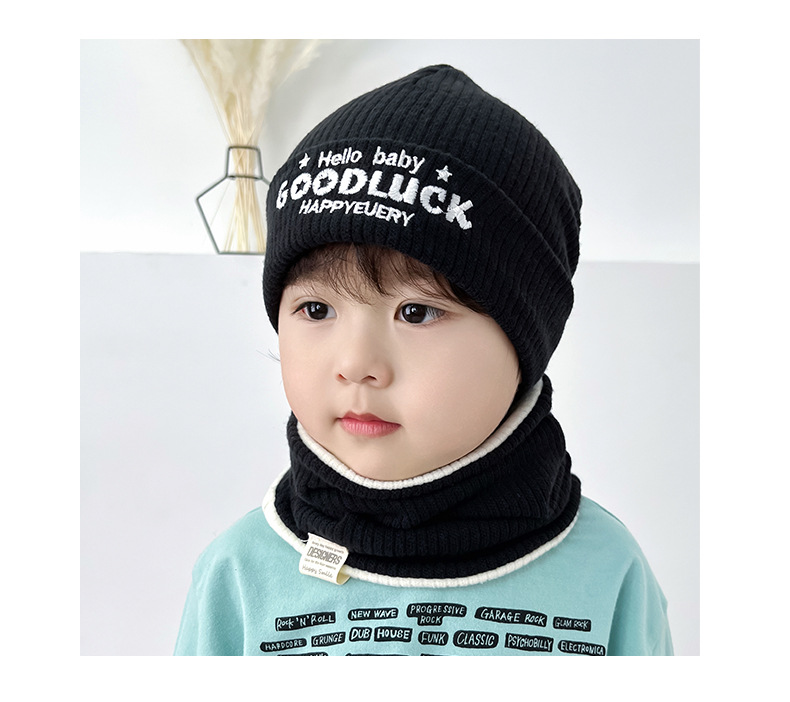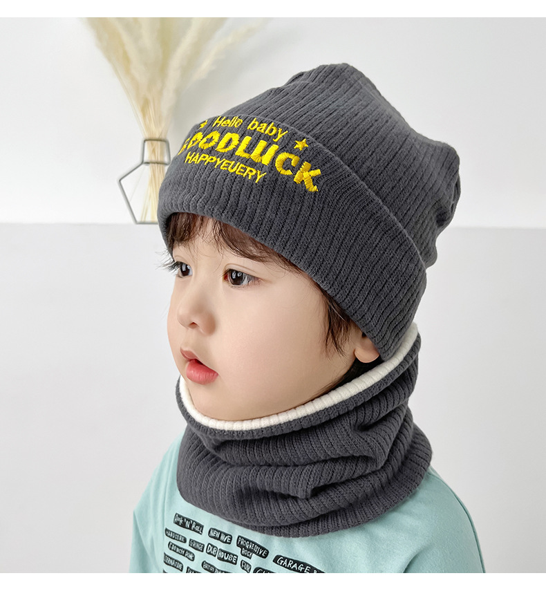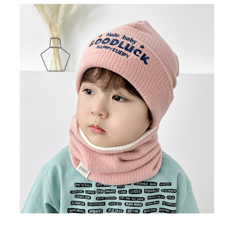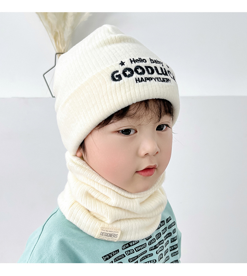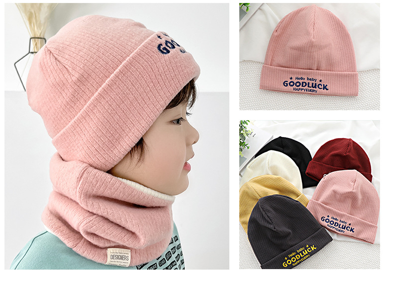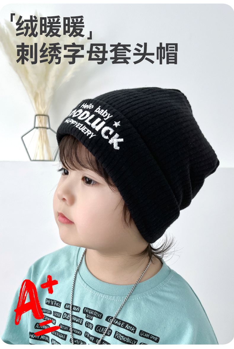 冬の新型韓国版子供用ベルベット帽子刺繍穴条乳幼児用フード