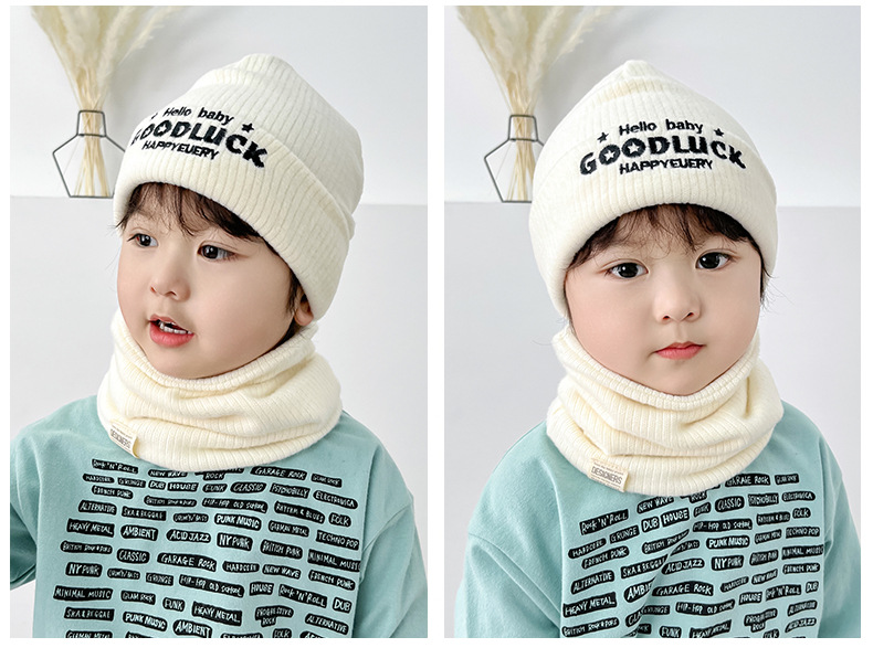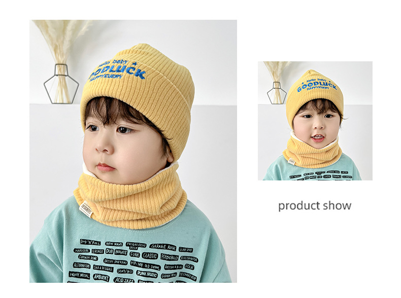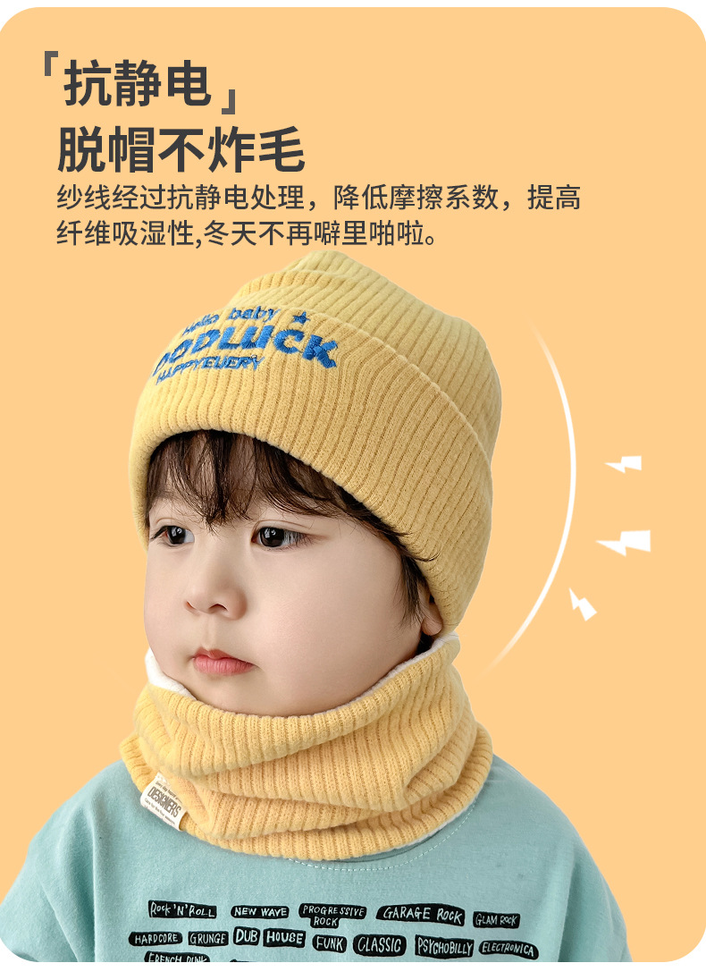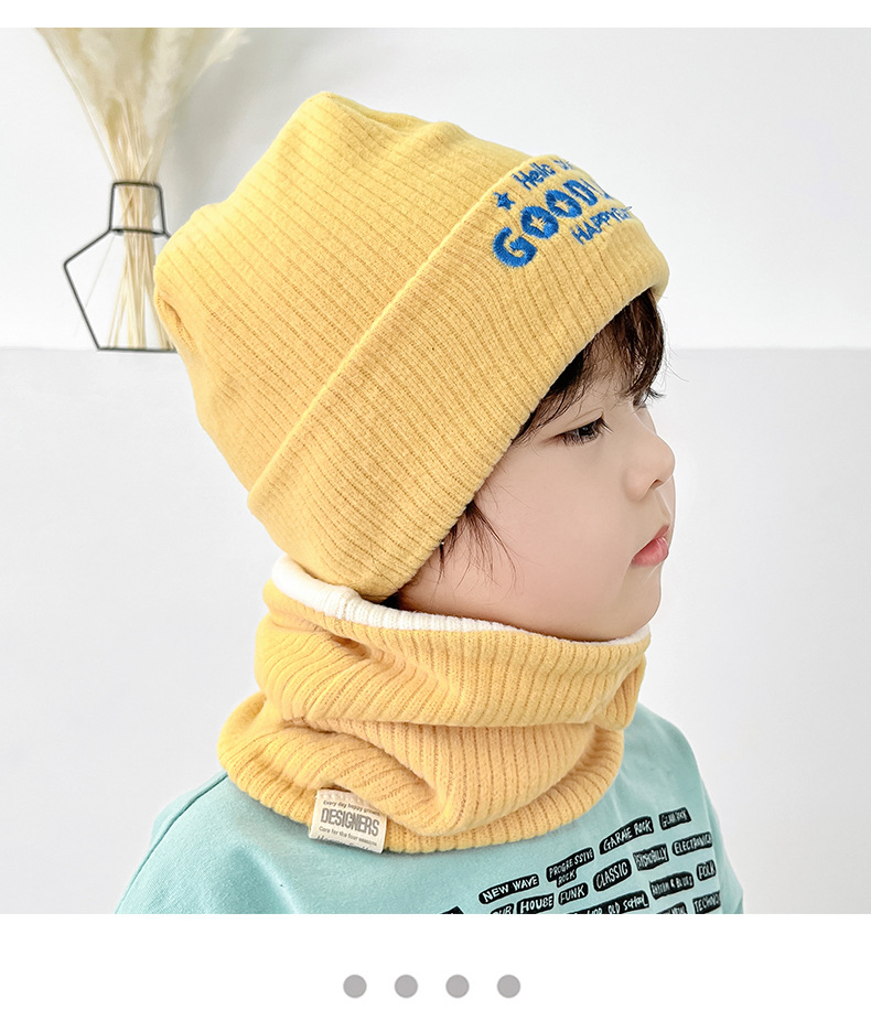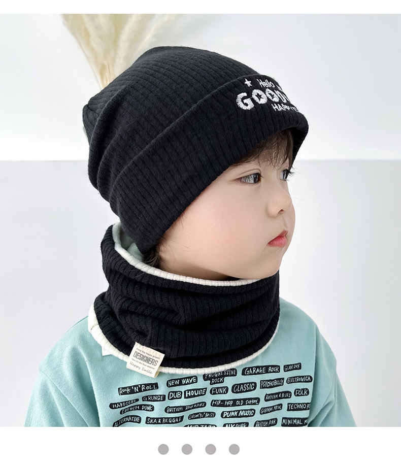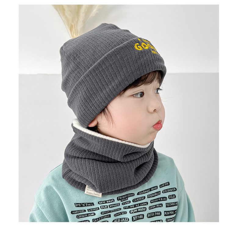 子供秋冬保温純綿二重帽子マフラー2点セット