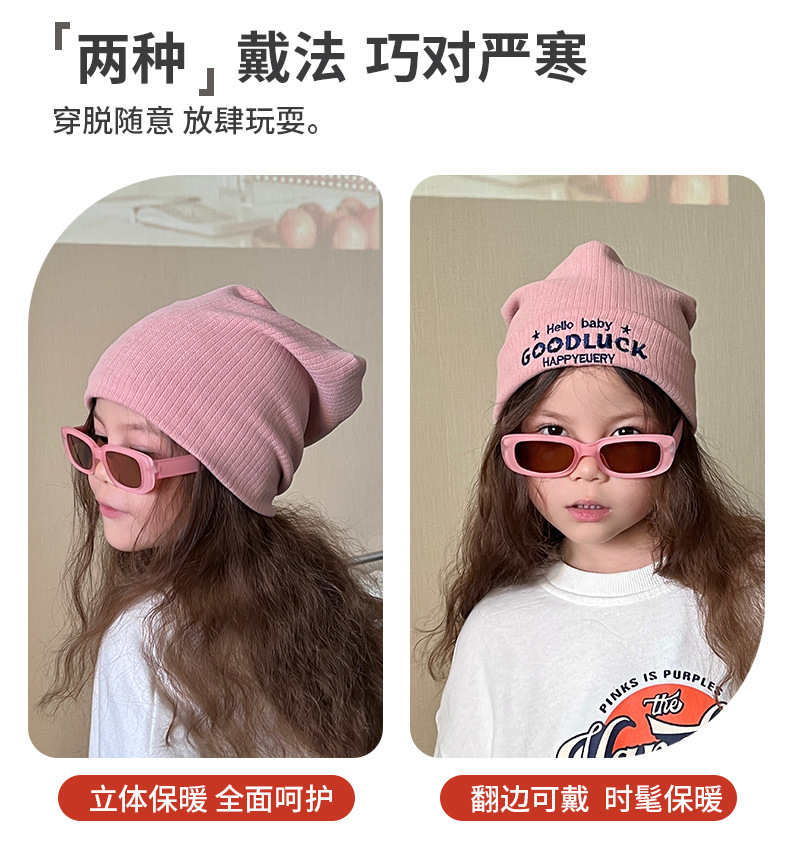 儿童帽子春秋冬季新款男女童护耳保暖刺绣翻边套头帽小孩防风冷帽