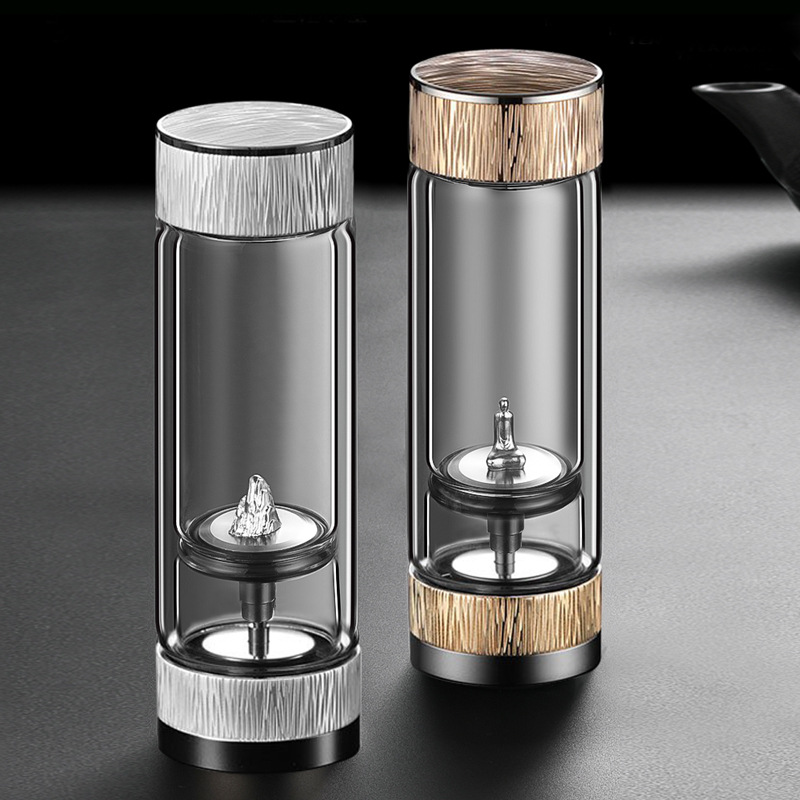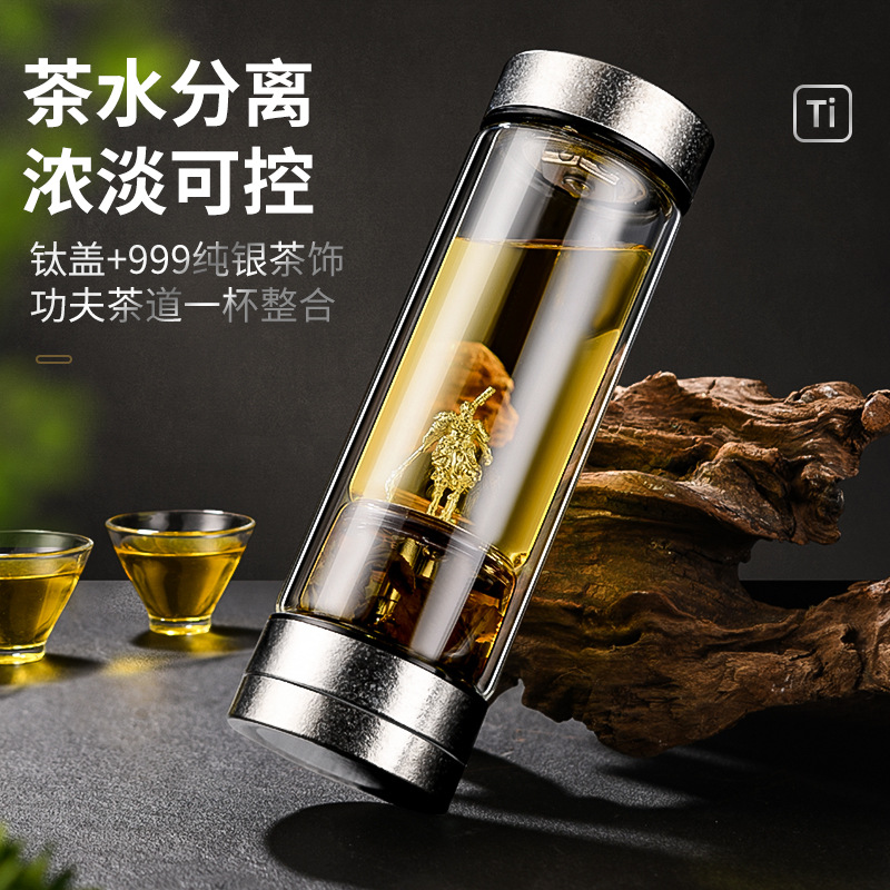 チタン茶水分離二重グラス男性女性高級ビジネスプレゼント高ホウ素シリコン茶カップ純銀銀飾りカップ