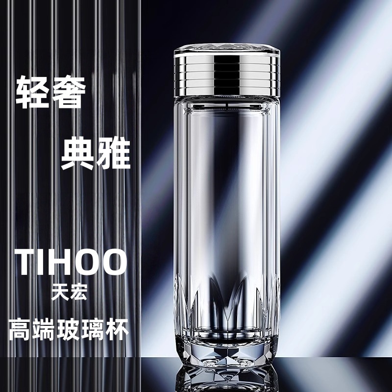 高級透明グラス男性純チタン抗菌水晶カップ保温二重断熱高級泡茶カップ