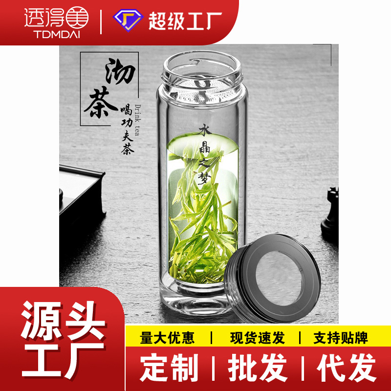 ミニ茶器、茶水分離カップ、男性用オフィス携帯用、女性用花茶カップ、二重ガラスカップ、ロゴ入り茶葉
