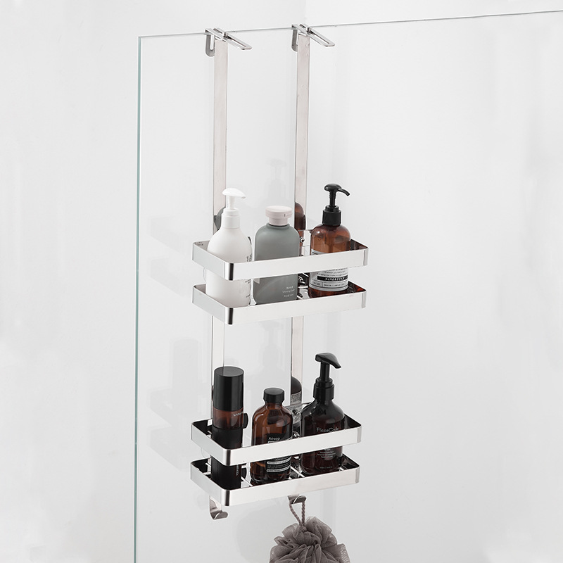 シャワールームの物置棚304ステンレスラック浴室のシャワールームの二重バスケットの風呂場のドアの後ろの収納棚
