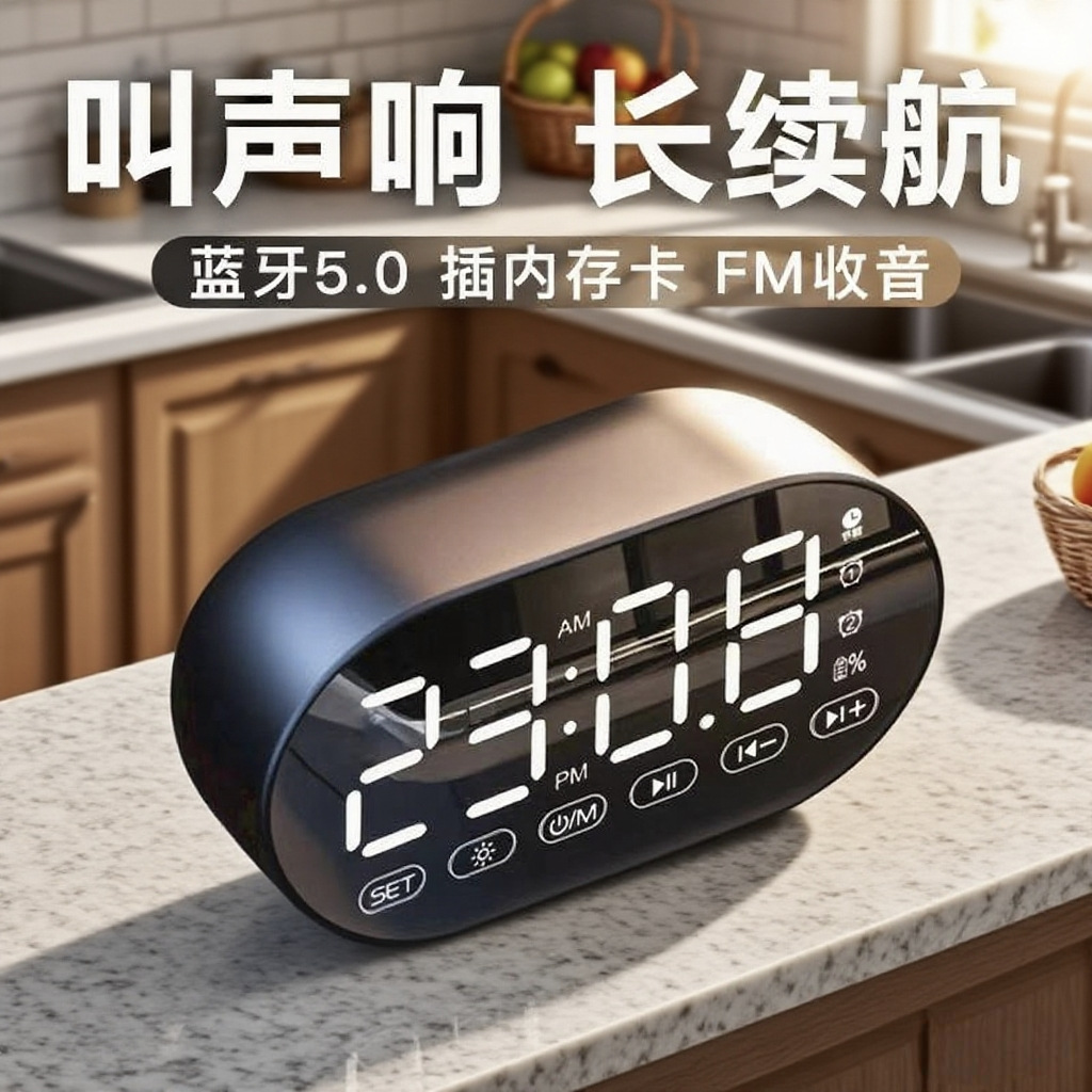 ワイヤレスbluetoothスピーカー小型ミニ多機能学生目覚まし時計ポータブルfmカード入金放送スピーカー