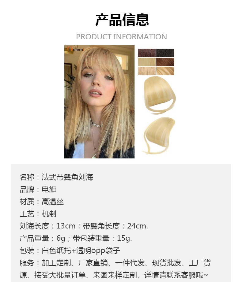 空気の前髪は鬢の角の前髪のかつらを持っています。前髪の双鬢と前髪のかつらは自然に髪を補います。