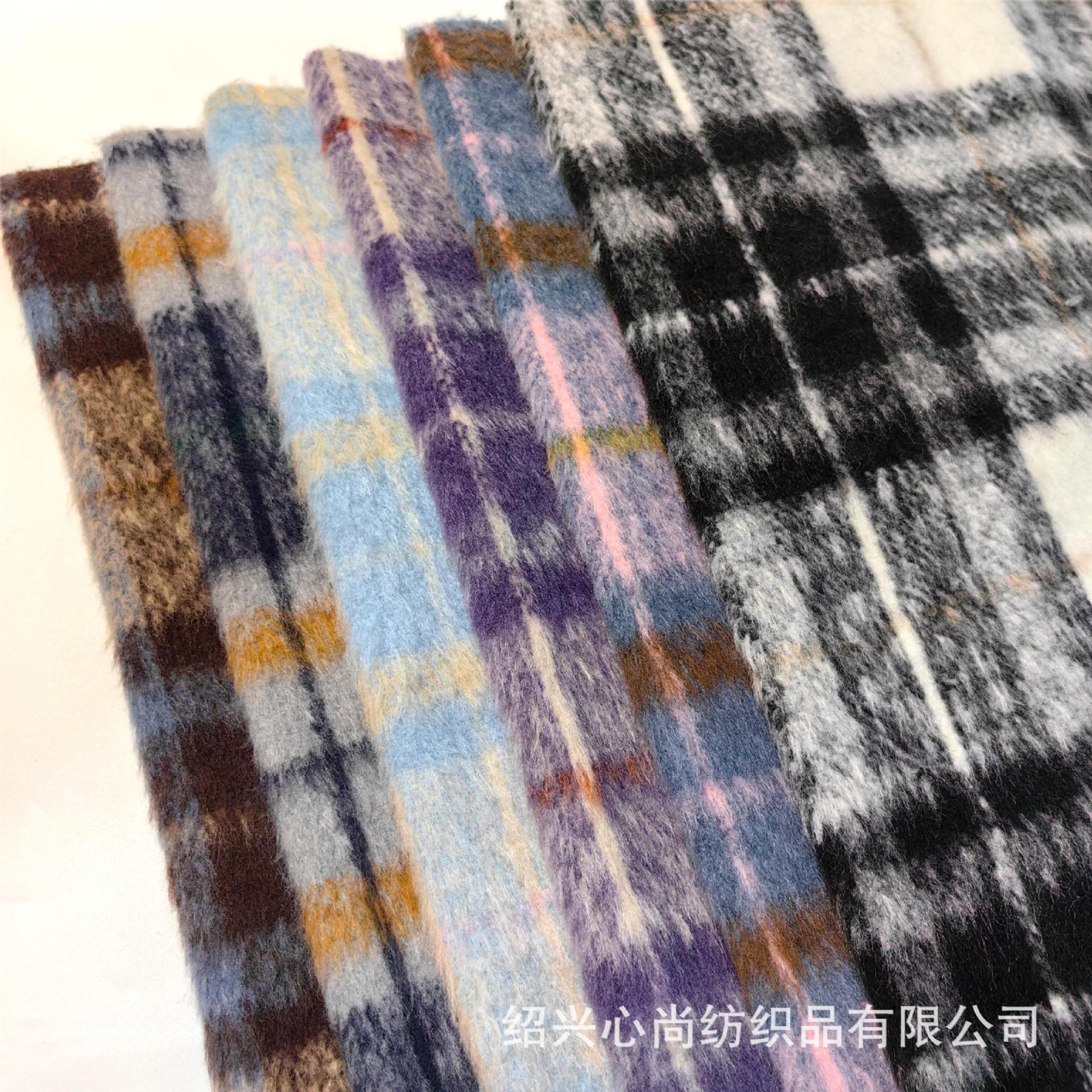 粗纺呢绒 拉毛格子毛呢面料 秋冬服装面料 现货供应