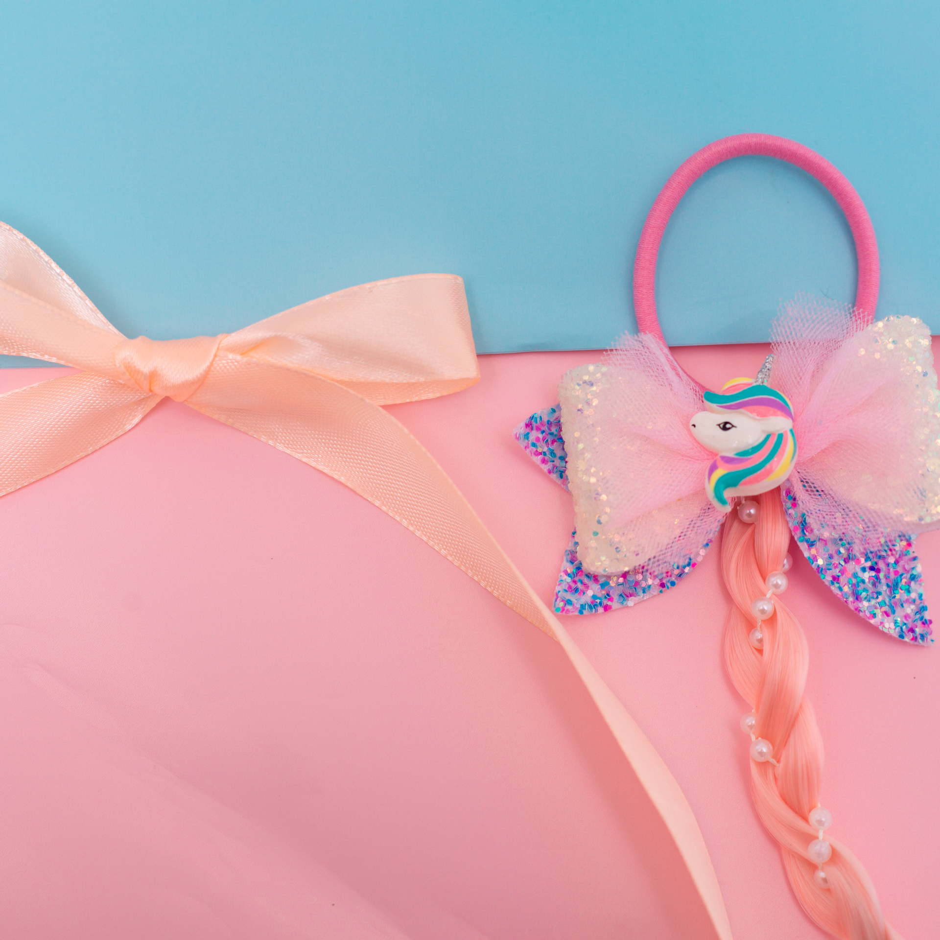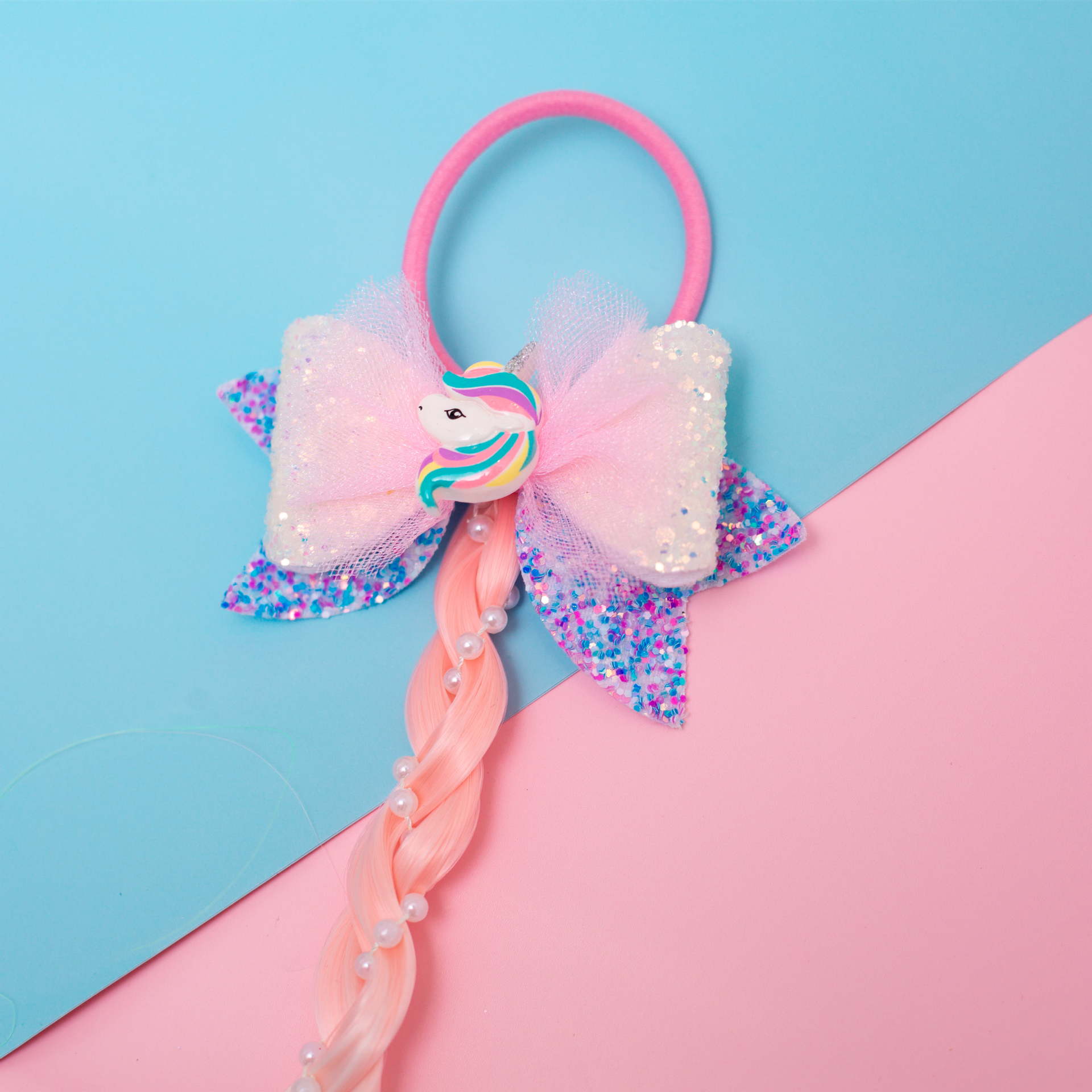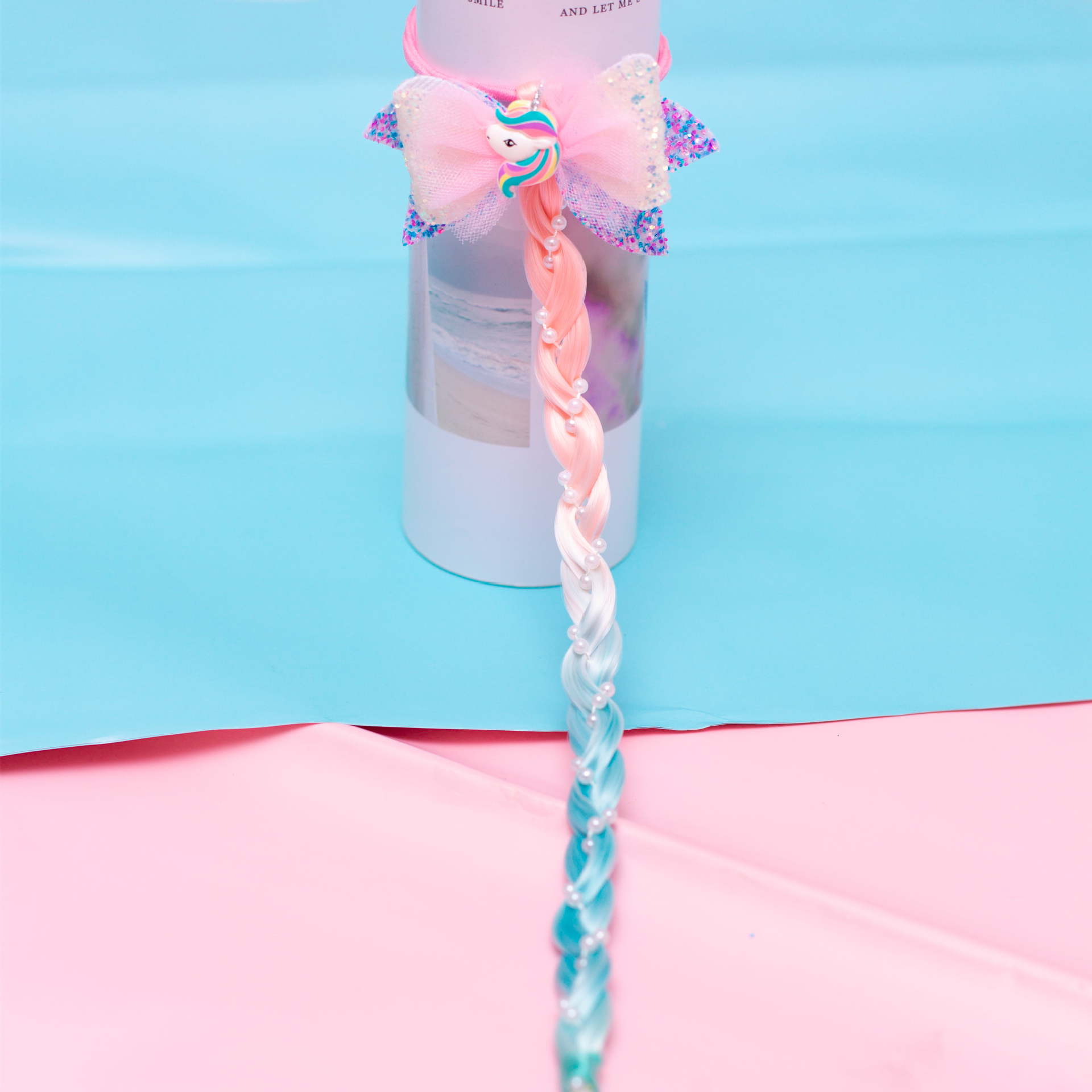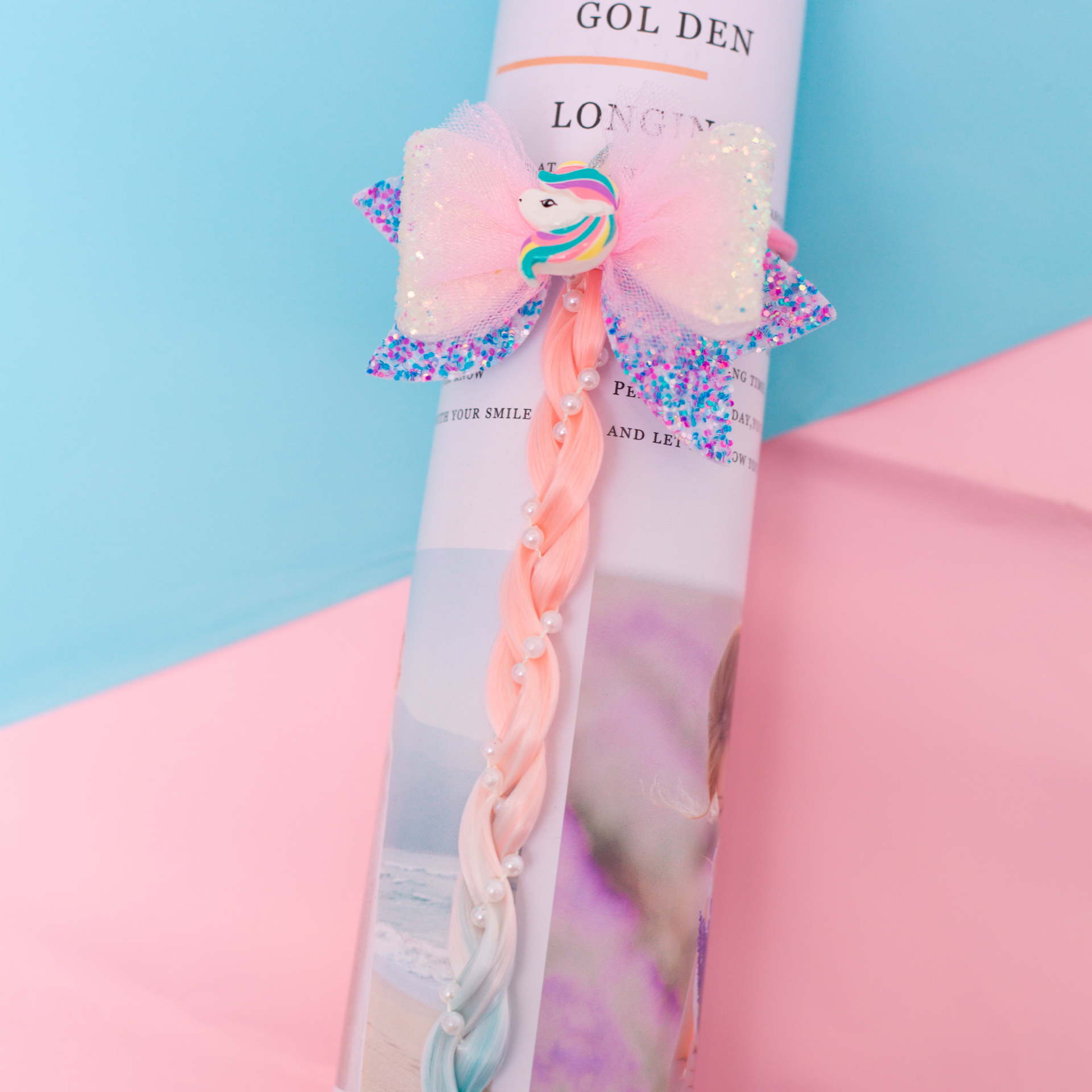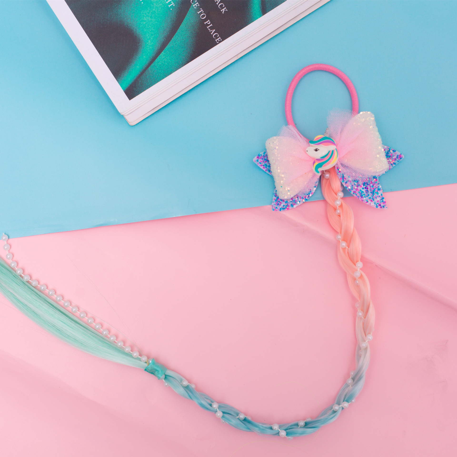 卸売りネギの皮の蝶結びの子供の髪の輪の甘いユニコーンの女子学生のかつらの髪のひもの真珠の麻のお下げの髪の飾り