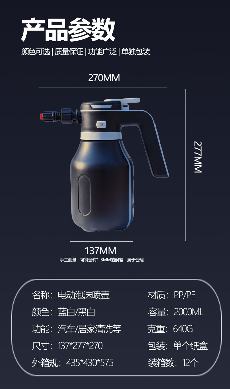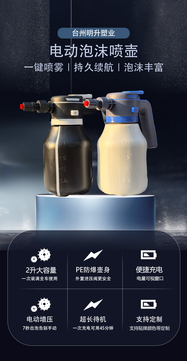 电动泡沫喷壶充电式大容量2L泡沫水壶洗车厨房清洁通用泡沫喷壶