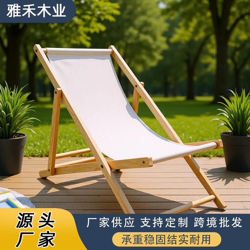 卸売屋外ビーチチェア木製折りたたみ式家庭用レジャーチェア昼休みチェアレイジーチェアリクライニングチェアキャンバスチェアバルコニーチェア