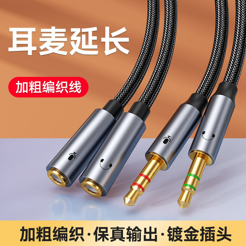 耳麦延長線双公対双母ヘッドフォンマイク音声ケーブル延長編組線