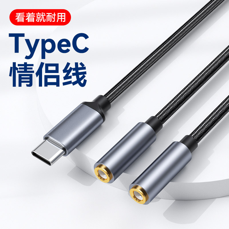 Typec一分二音周波線カップル線マイクヘッドフォン変換ヘッドusbc口二合一線