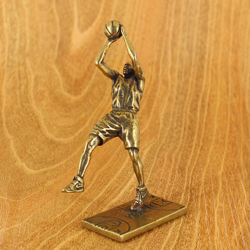 新しい真鍮の黒曼巴の後で仰向けにバスケットボールの家庭の事務のデスクトップの小さい置物の銅器の卸売りを跳びます。
