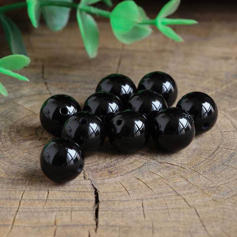 天然乌金黑曜石散珠圆珠饰品串珠配件材料半成品diy手链项链批发