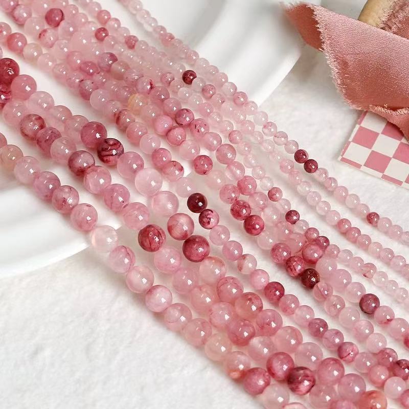 血色波斯玉玉髓散珠粉黛圆珠饰品半成品diy手工材料手链编织批发