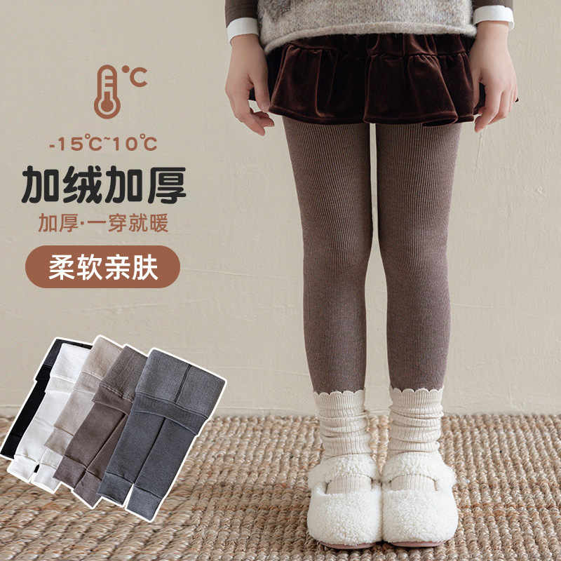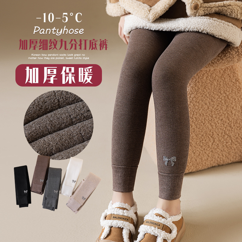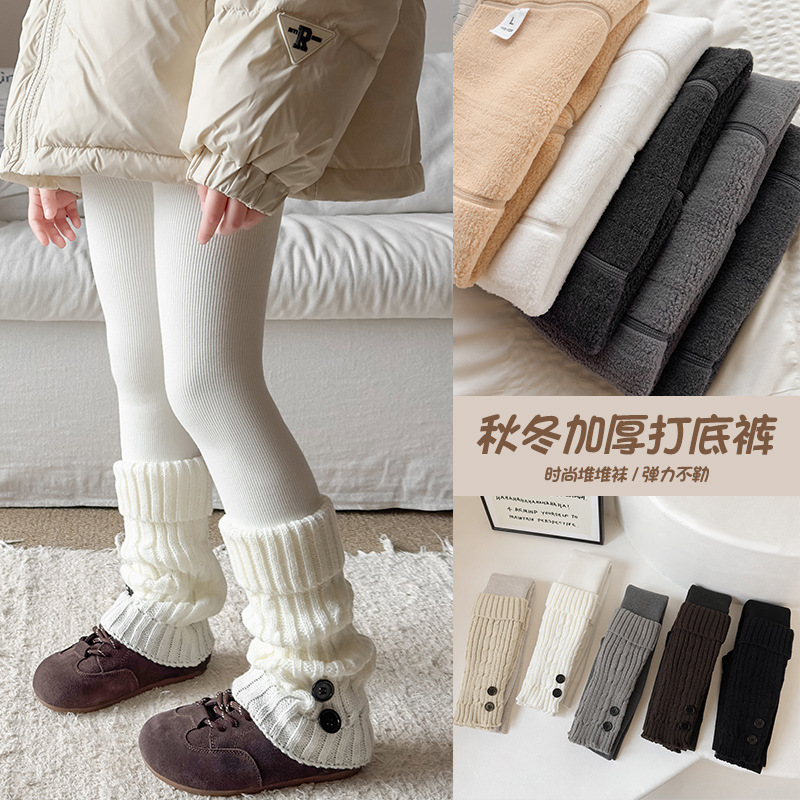 女童连裤袜秋冬加绒加厚打底裤韩系羊毛袜搭配撞色潮流穿搭九分裤