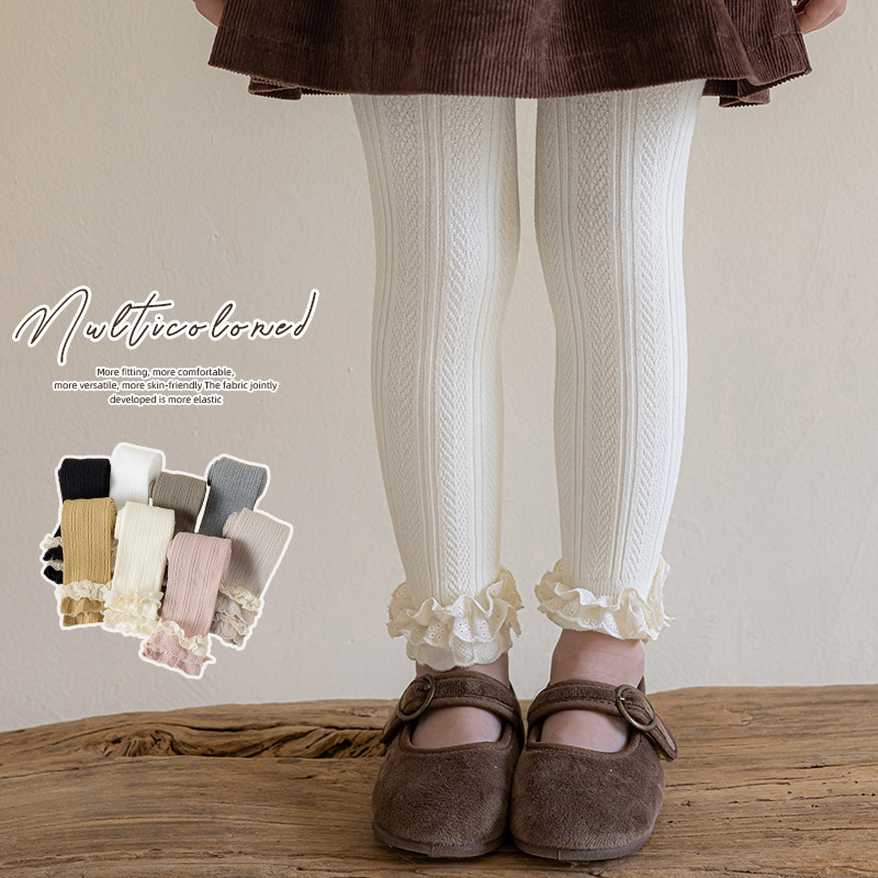 批发儿童连裤袜春秋宝宝棉花边九分裤紧身裤中小童女童公主打底裤
