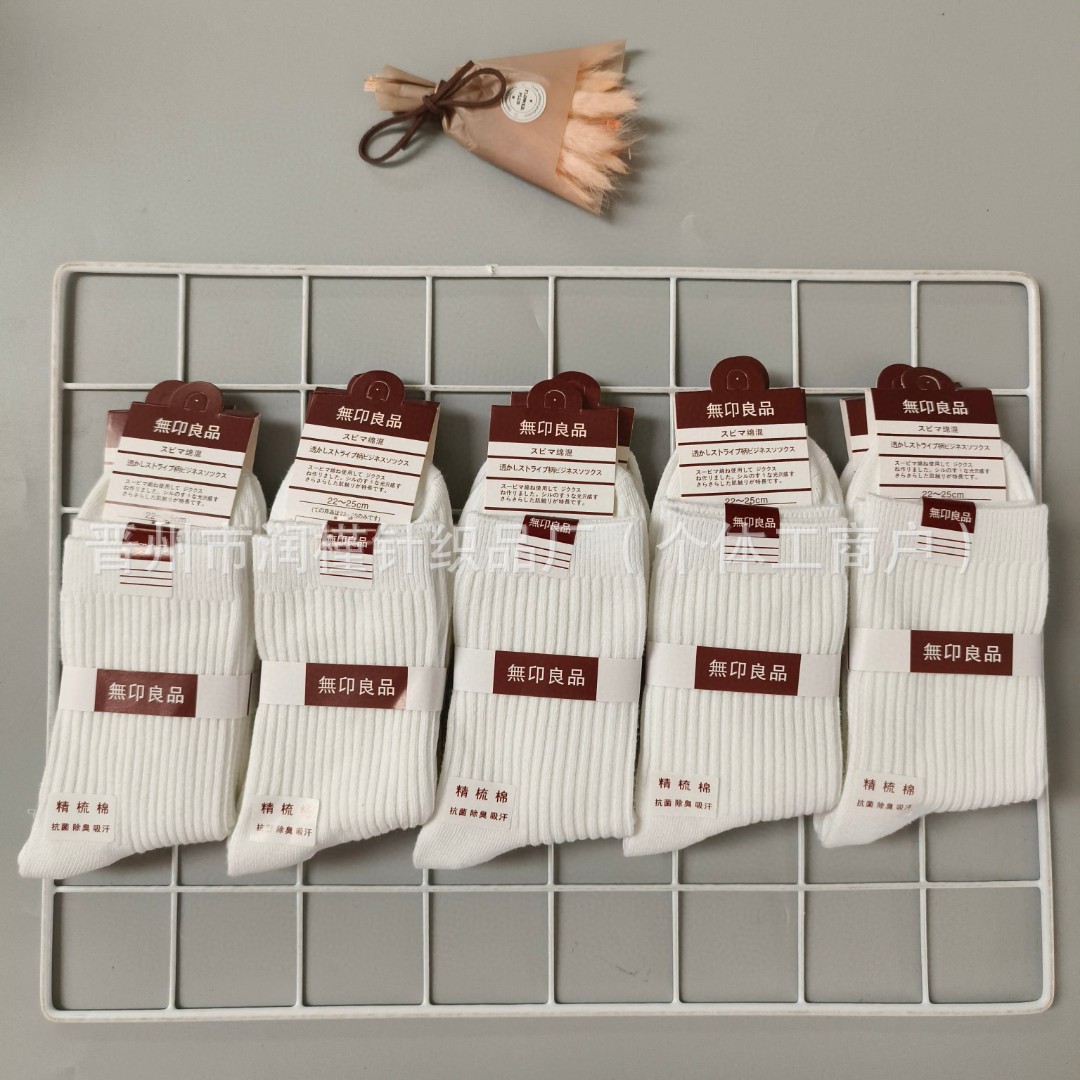 男女双針綿靴下無印良品秋冬新作中筒靴下双針純色精練綿カジュアルビジネス靴下