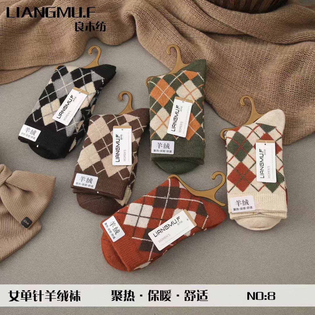 良木坊羊绒袜子秋冬加厚女士羊绒中筒袜新年红色圣诞羊毛袜子批发