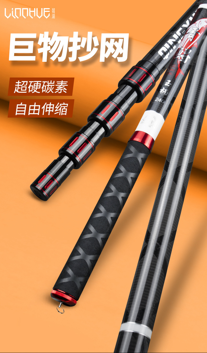 碳素大物抄网杆伸缩杆叉鱼捞鱼高空摘果槟榔松塔核桃割草槐花香椿