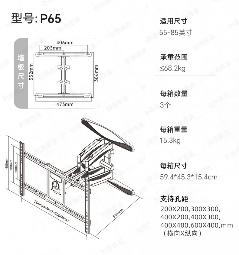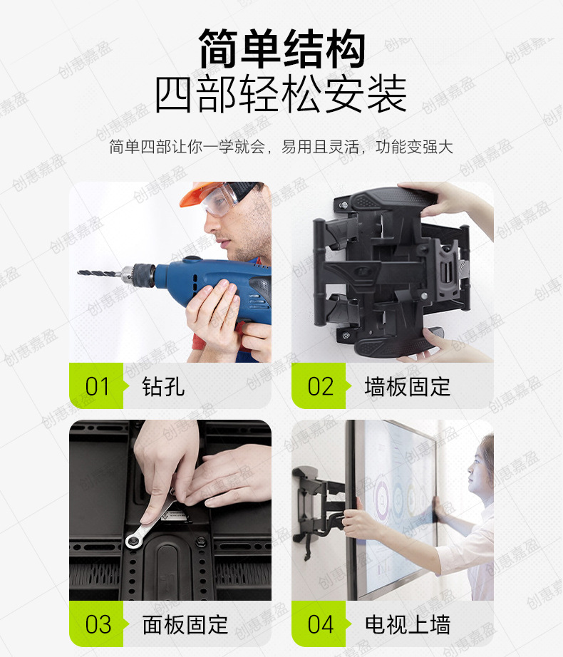 液晶电视机伸缩挂架墙壁可折叠旋转支架适用32-80寸通用摇摆支架
