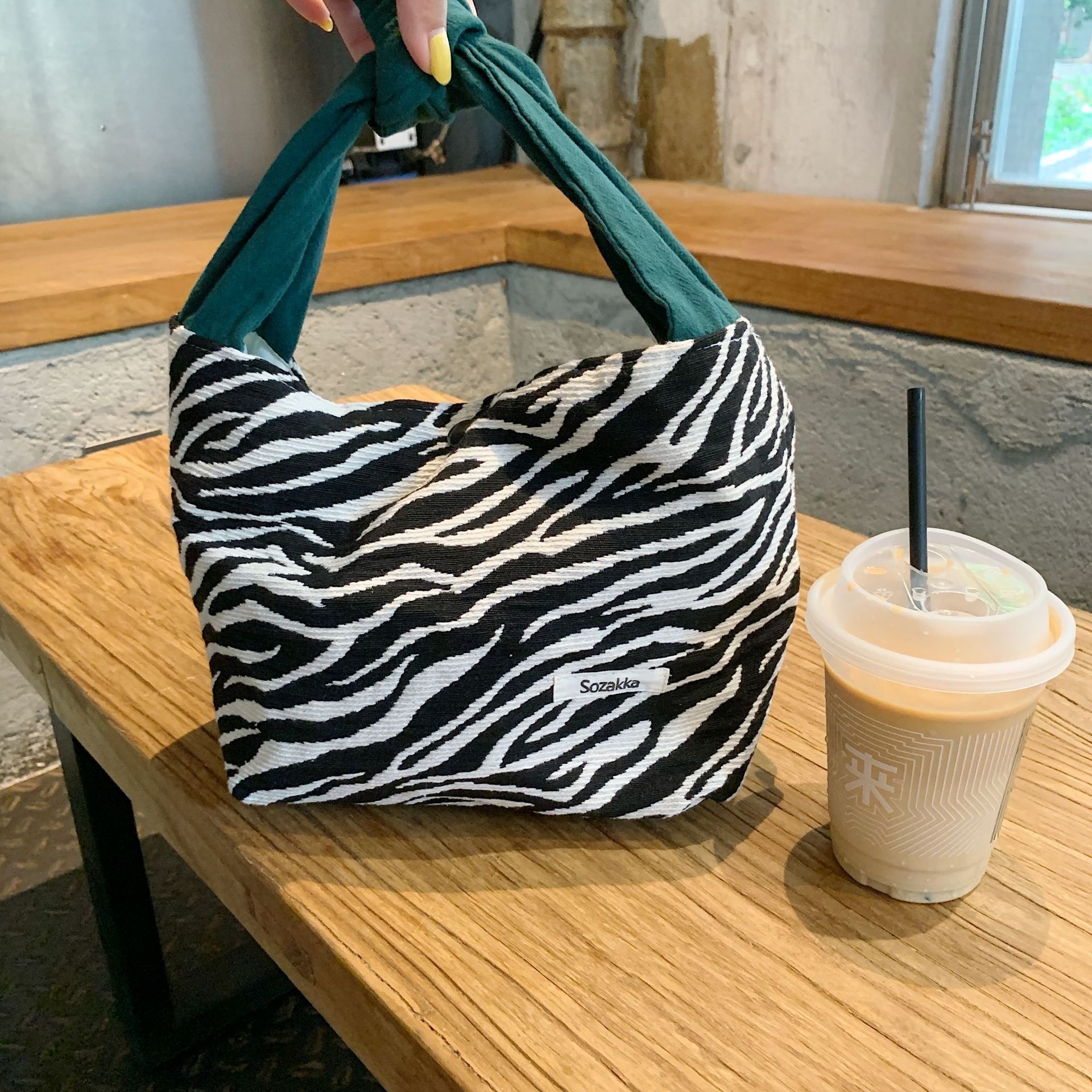 日本式和風弁当包出勤手提げウサギ耳insシマウマ紋学生弁当包付きおしゃれ弁当袋女