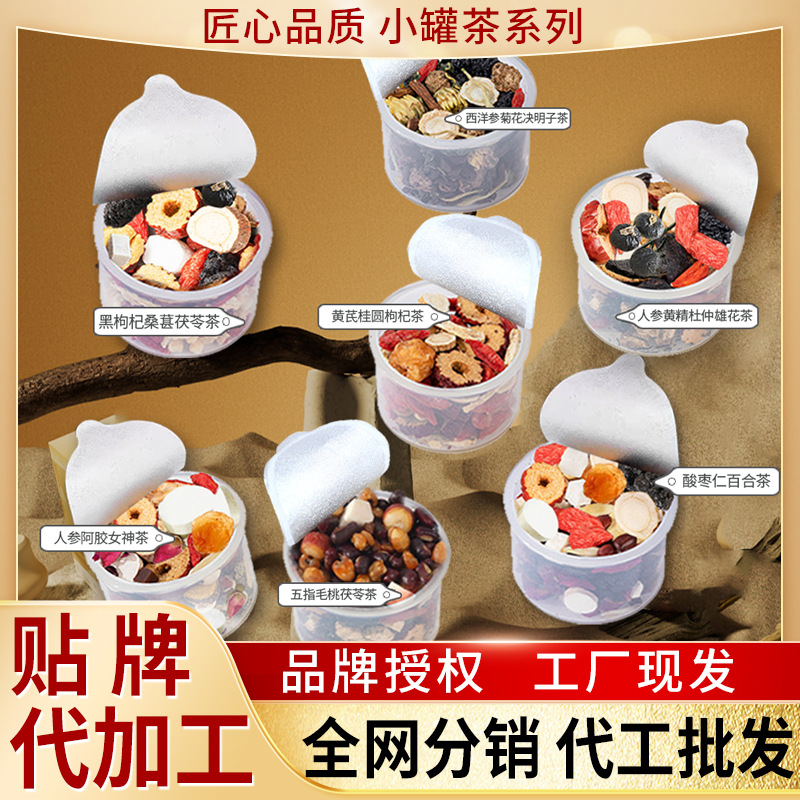 小缶茶紅参阿胶酸棗仁百合黄精杜仲雄花オウギ枸杞菊決明子茶卸売り